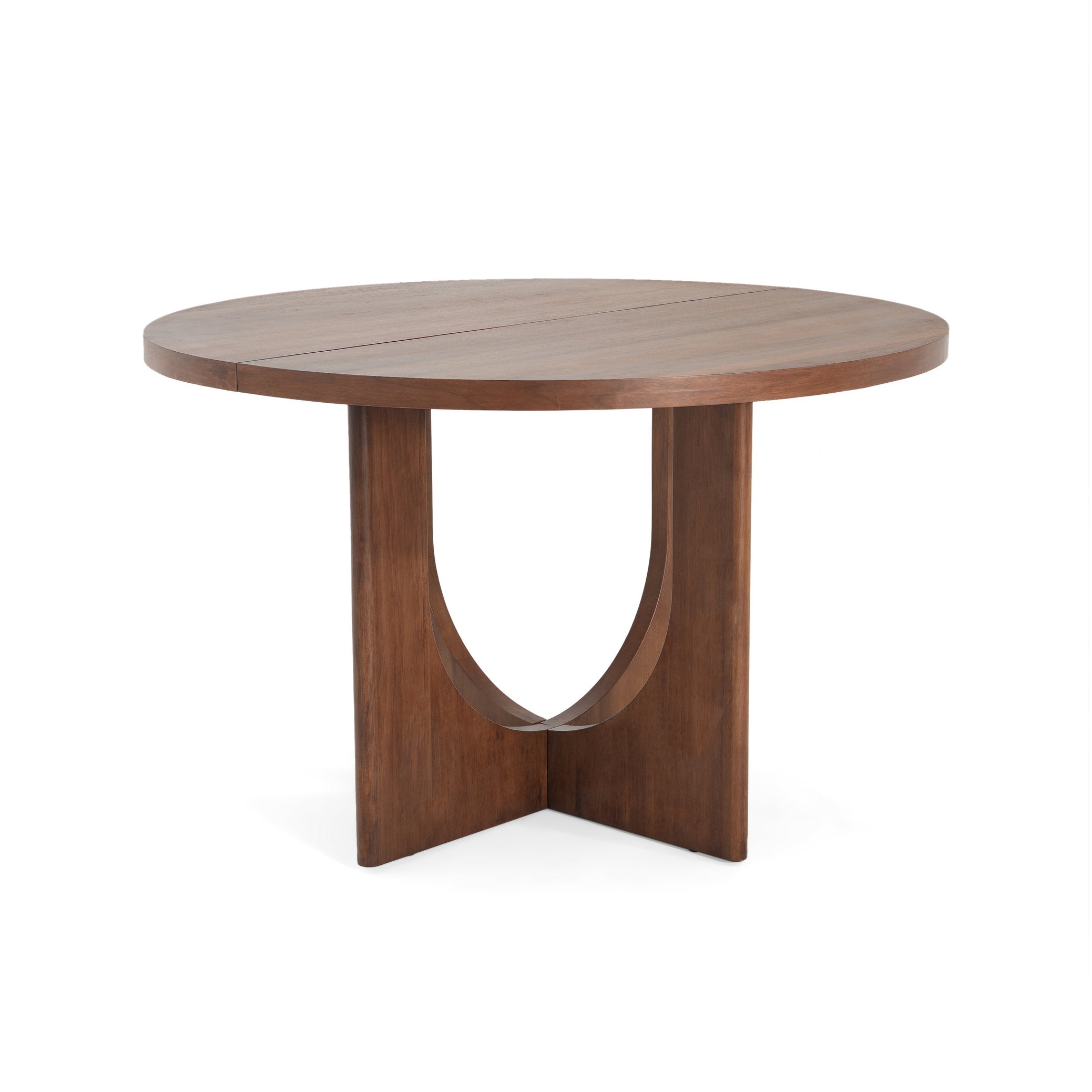 - Design Highlights: Round tabletop with intersecting cross legs for balanced support; smooth, gently sloping table edge for a refined look; curved backrest and splayed legs on the chairs for classic mid-century appeal.