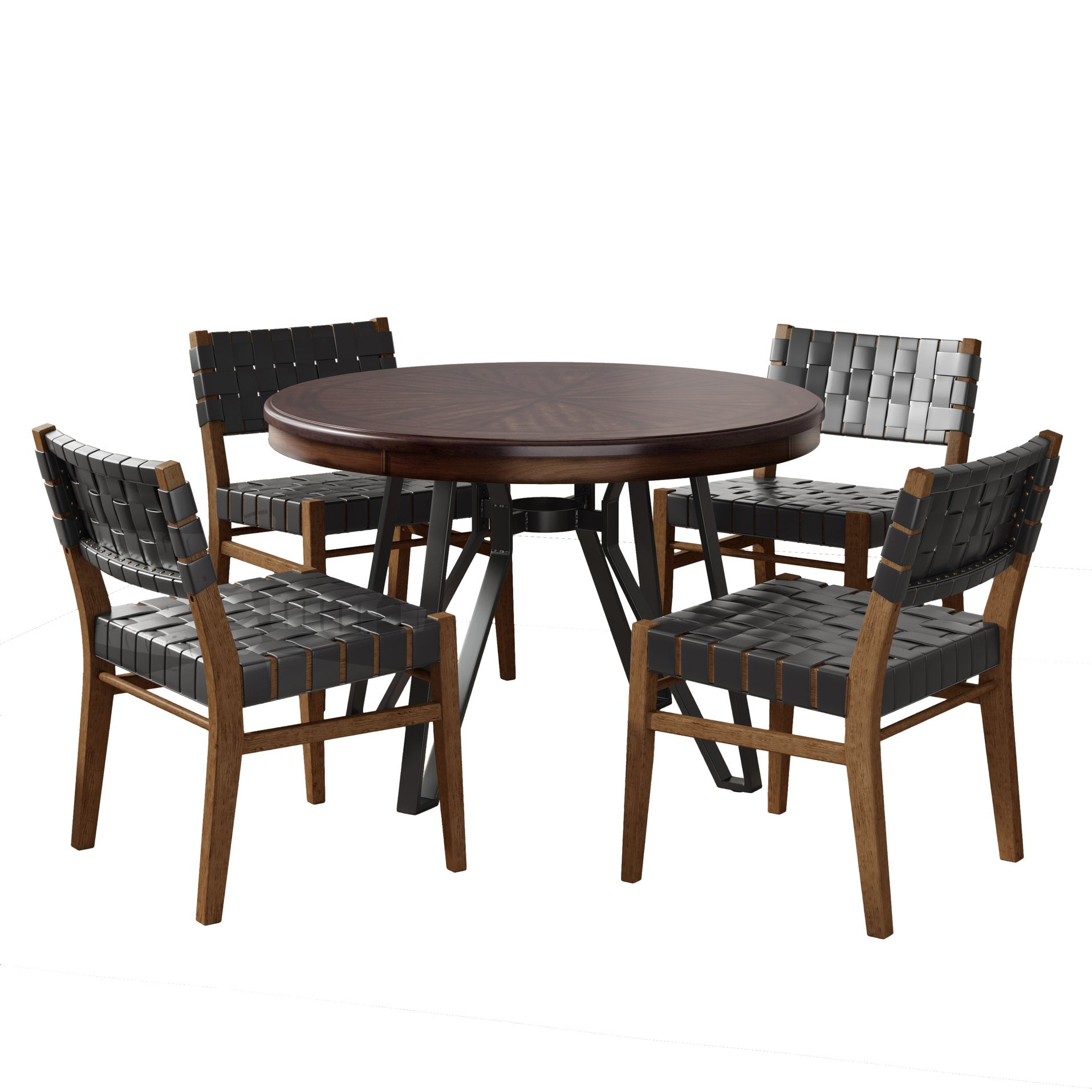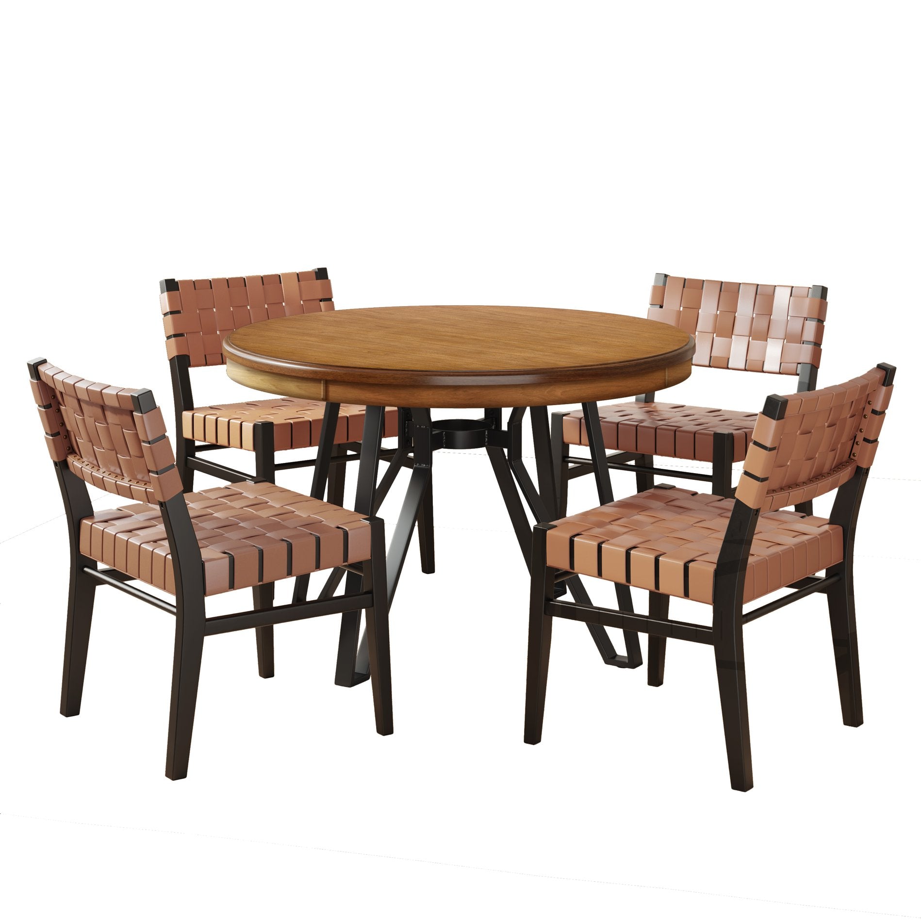 Elevate your dining area with a modern-industrial 5-piece set that blends comfort, durability, and thoughtful design. This coordinated collection pairs a round dining table with four cushioned chairs, creating a stylish yet practical centerpiece for everyday meals and entertaining.