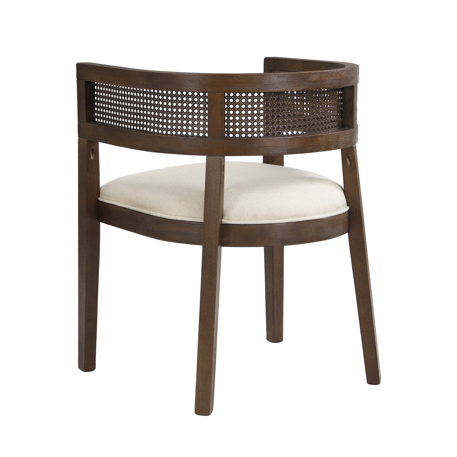 - Features: Includes one rectangular dining table and six upholstered chairs with U-shaped backrests and cane rattan webbing for a refined, airy look.