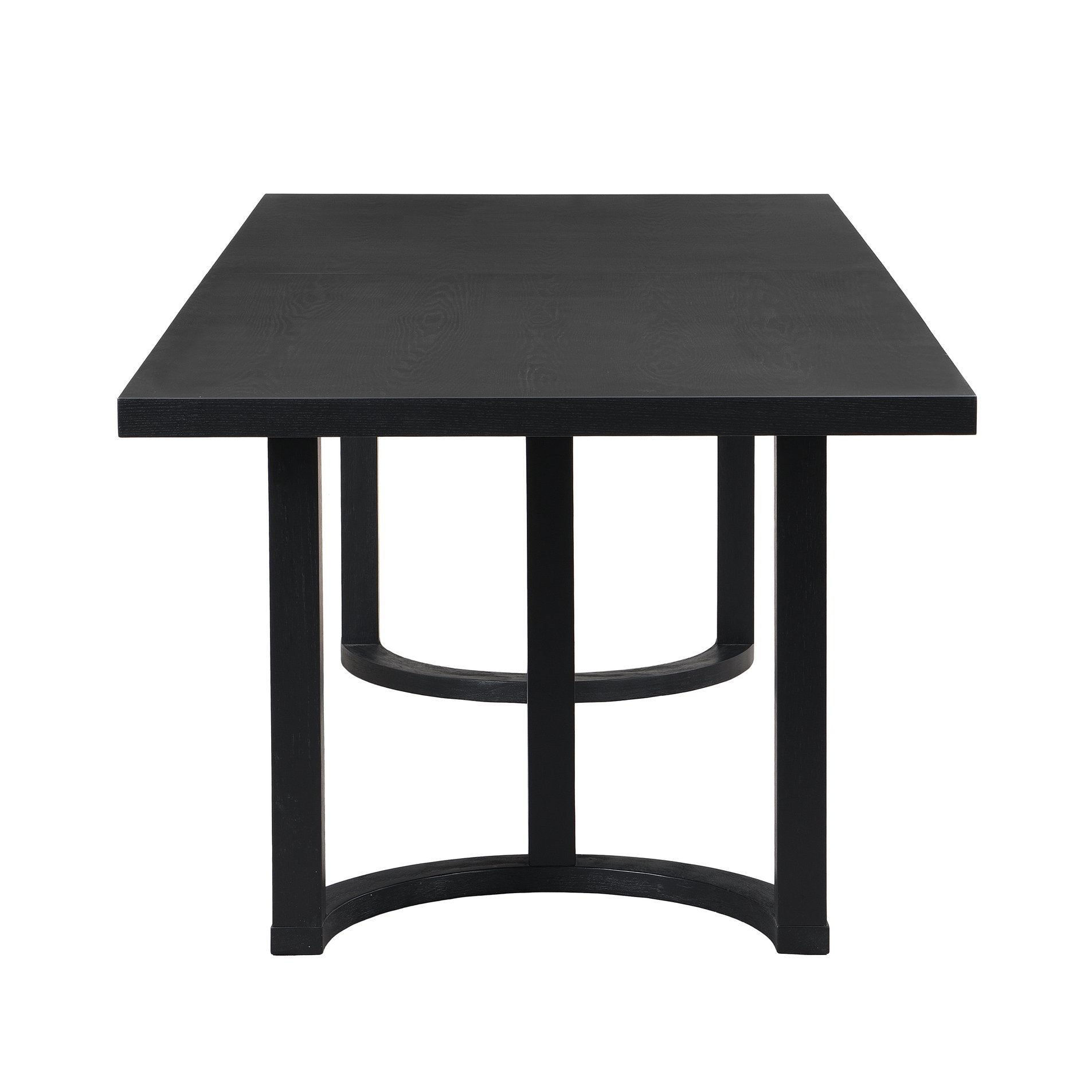 - Table Construction: Smooth rectangular tabletop supported by an elegant U-shaped trestle base—sharp lines softened by graceful curves for visual interest and stability.