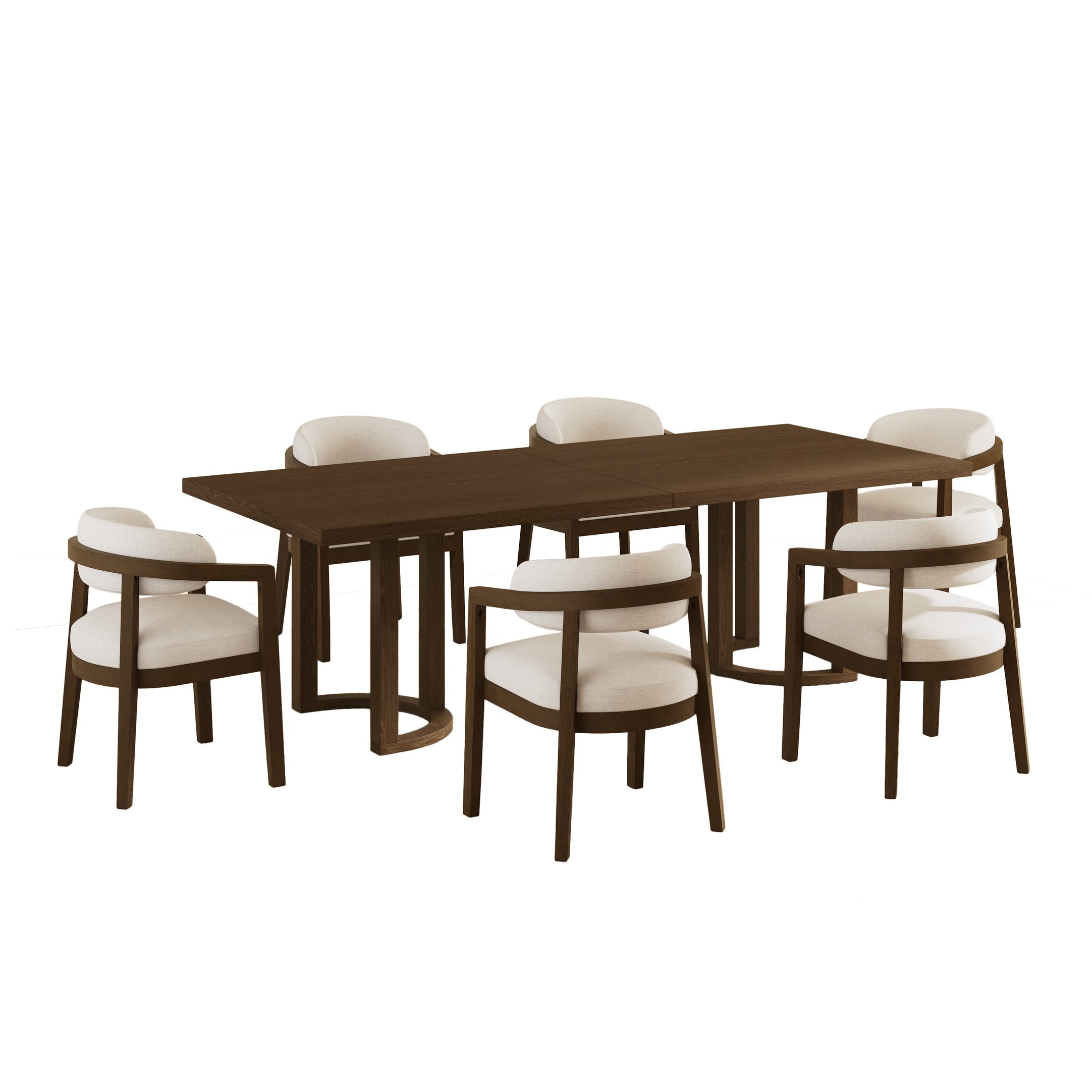 Elevate your dining space with this elegant 7-piece walnut dining set that blends contemporary style, ergonomic comfort, and durable craftsmanship. Designed for everyday use and special gatherings alike, this set creates a warm, inviting atmosphere while providing well-considered support and long-lasting performance.