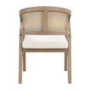 - Materials: Solid rubberwood frame with MDF components; chair backs feature natural rattan accents and upholstered seats for comfort.
