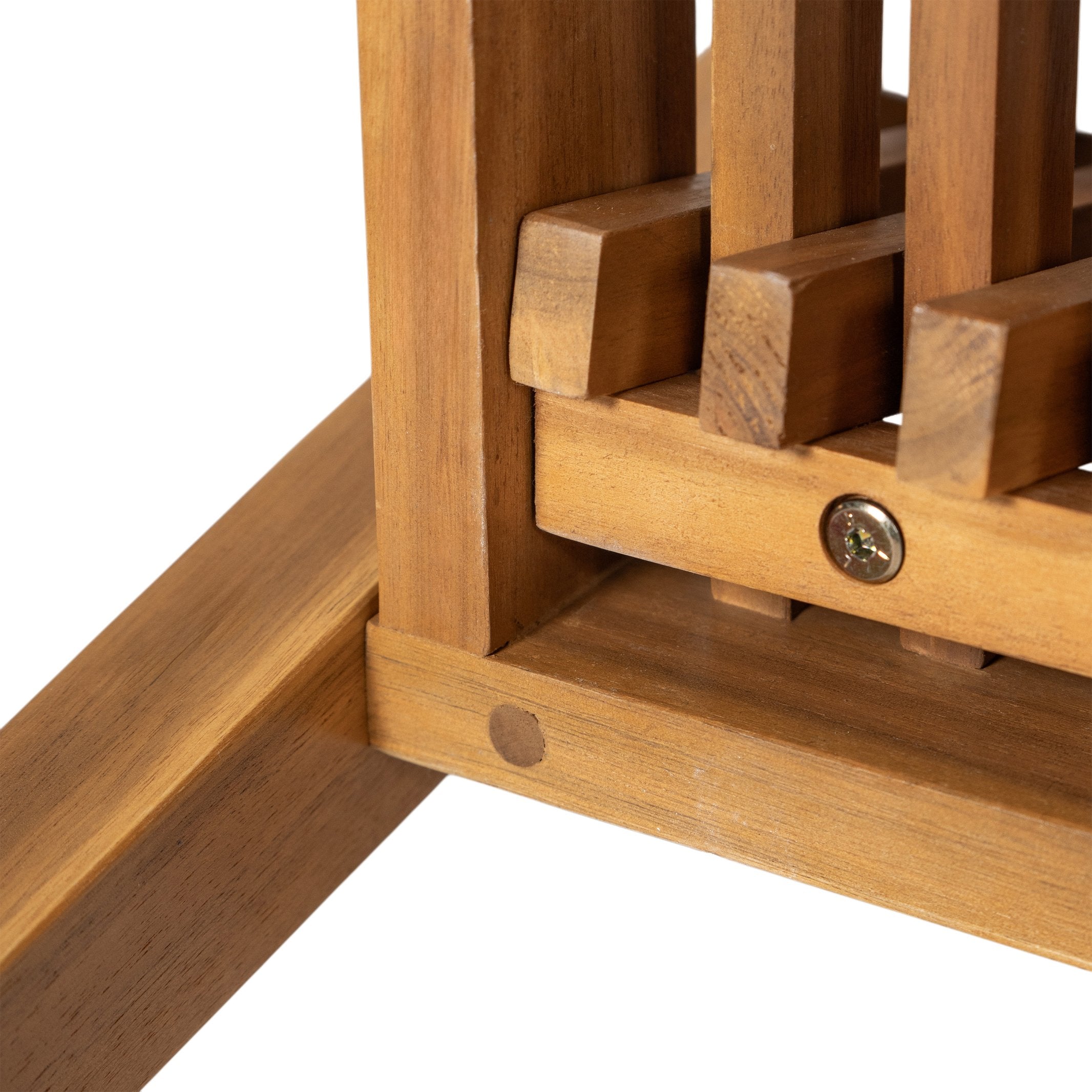 - Weather-ready design: Slatted table top promotes water drainage; durable wood construction suited for outdoor use