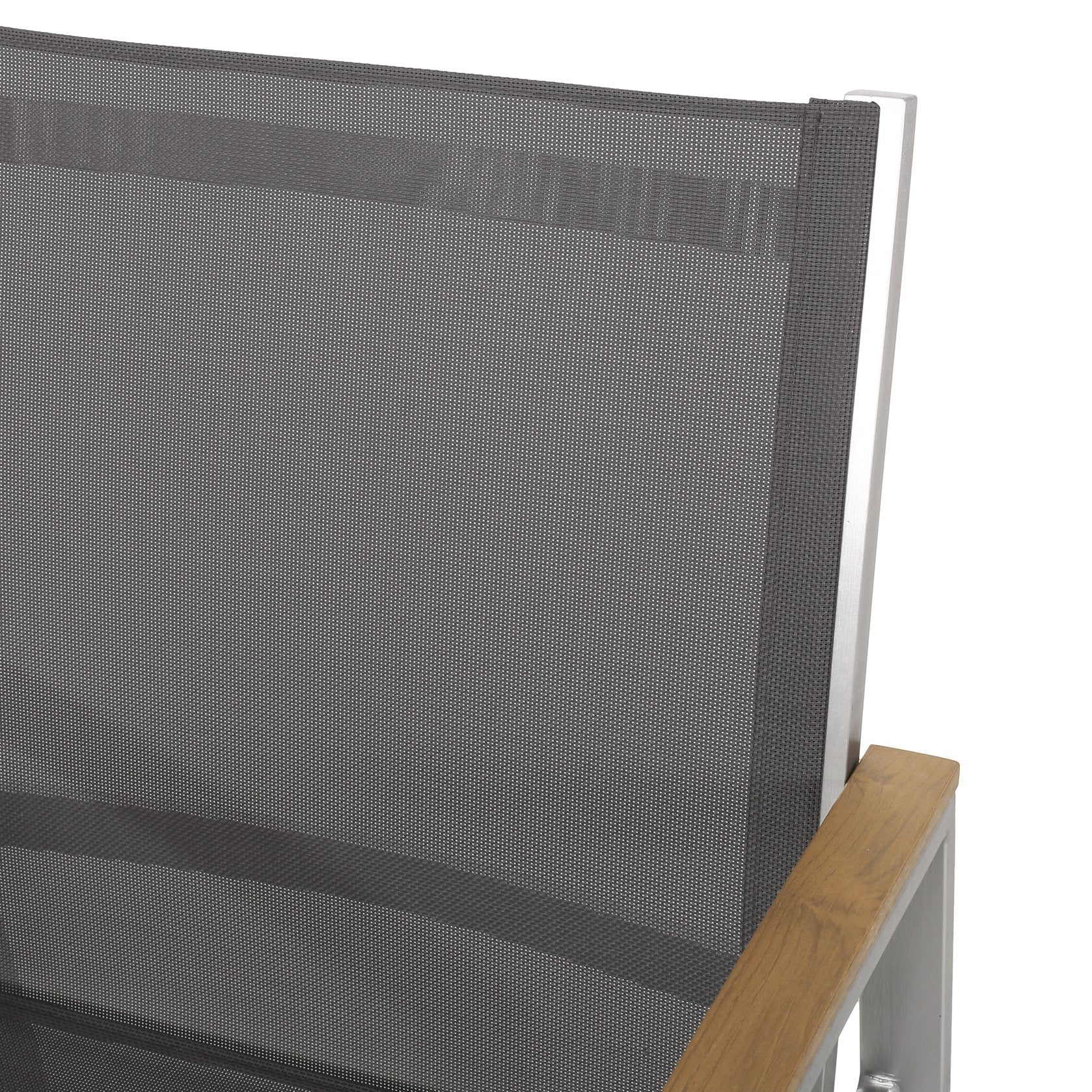 - Faux wood tabletop and armrests that deliver the look of wood without the maintenance