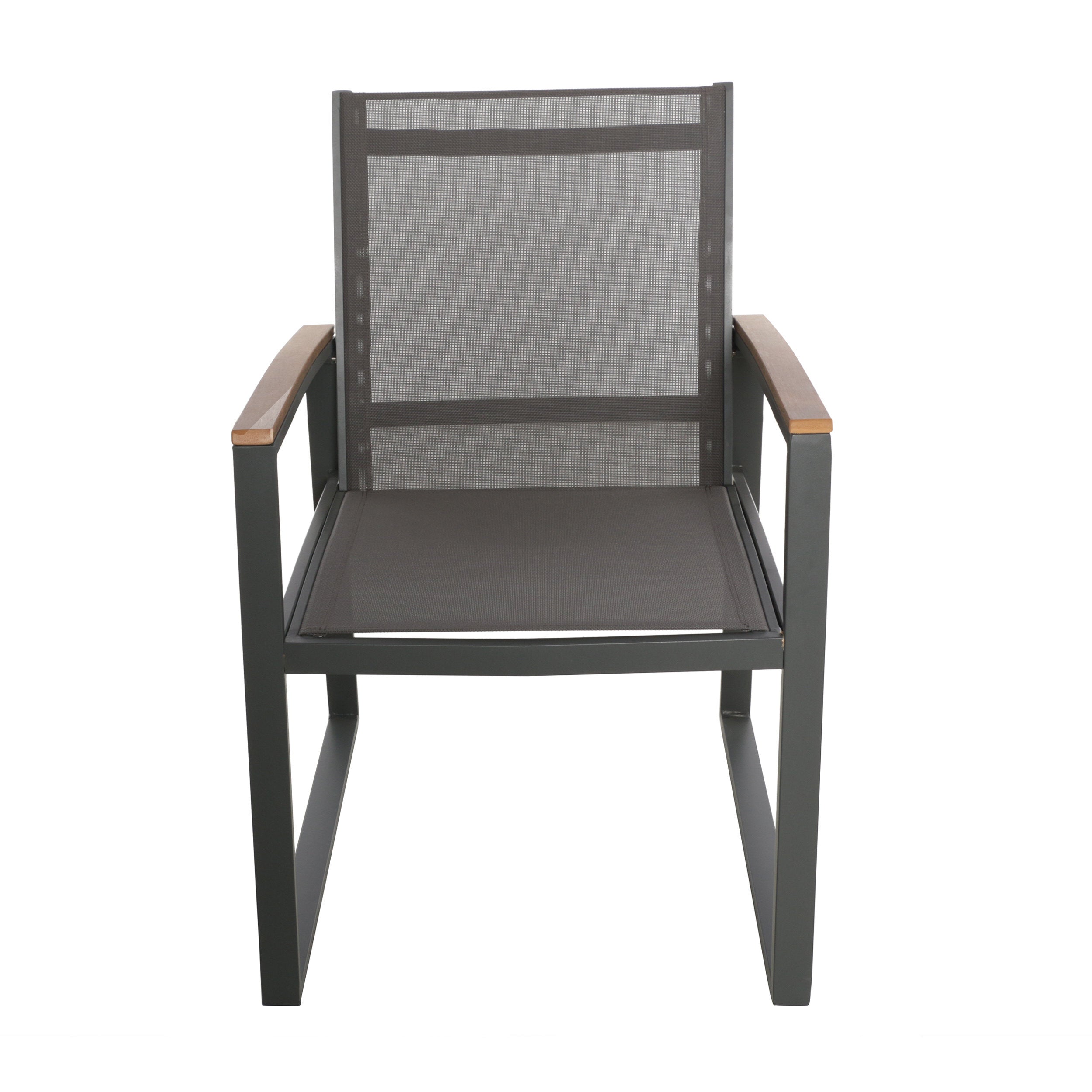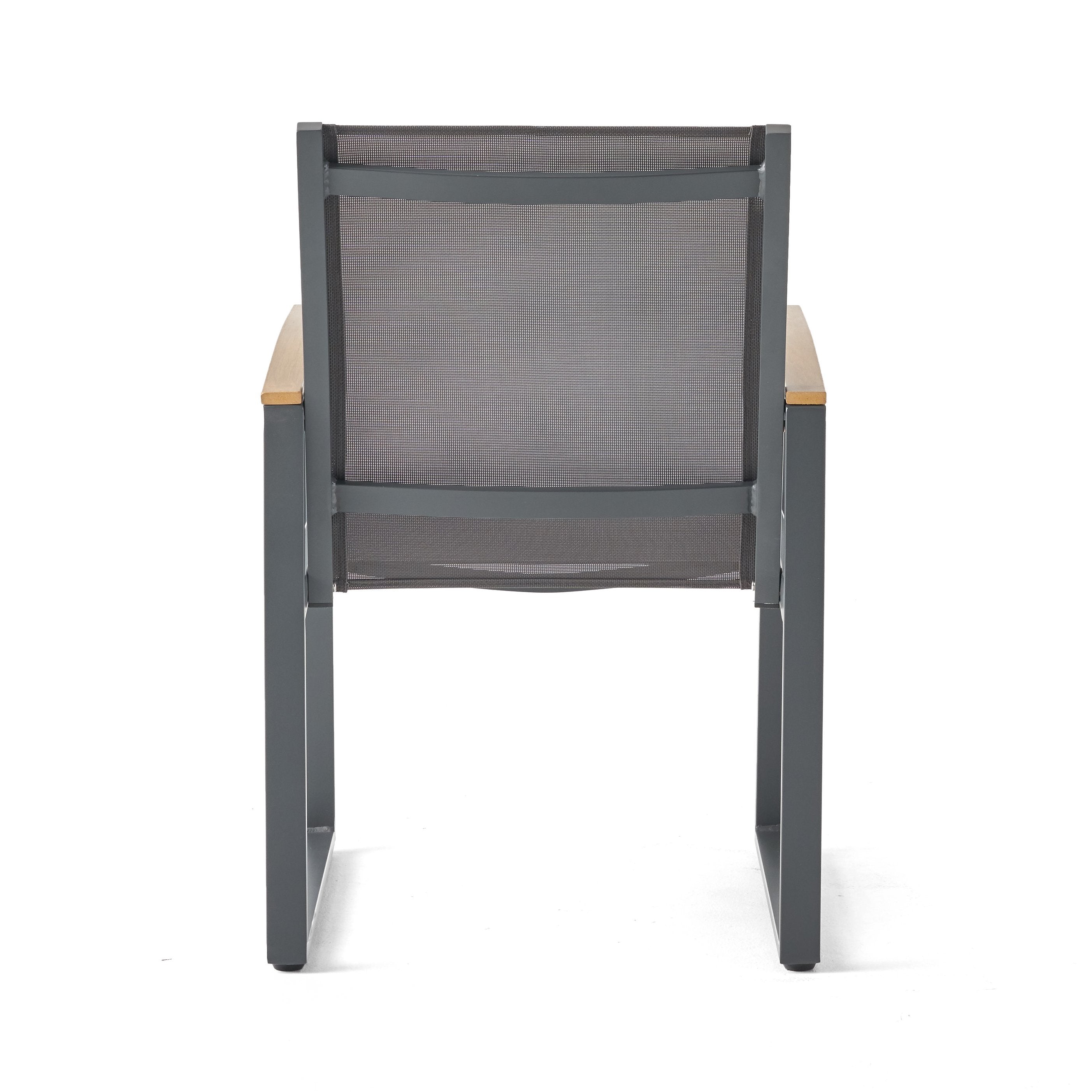 - The beautiful blend of wood, rust-proof aluminum, and mesh comes to life with this dining set