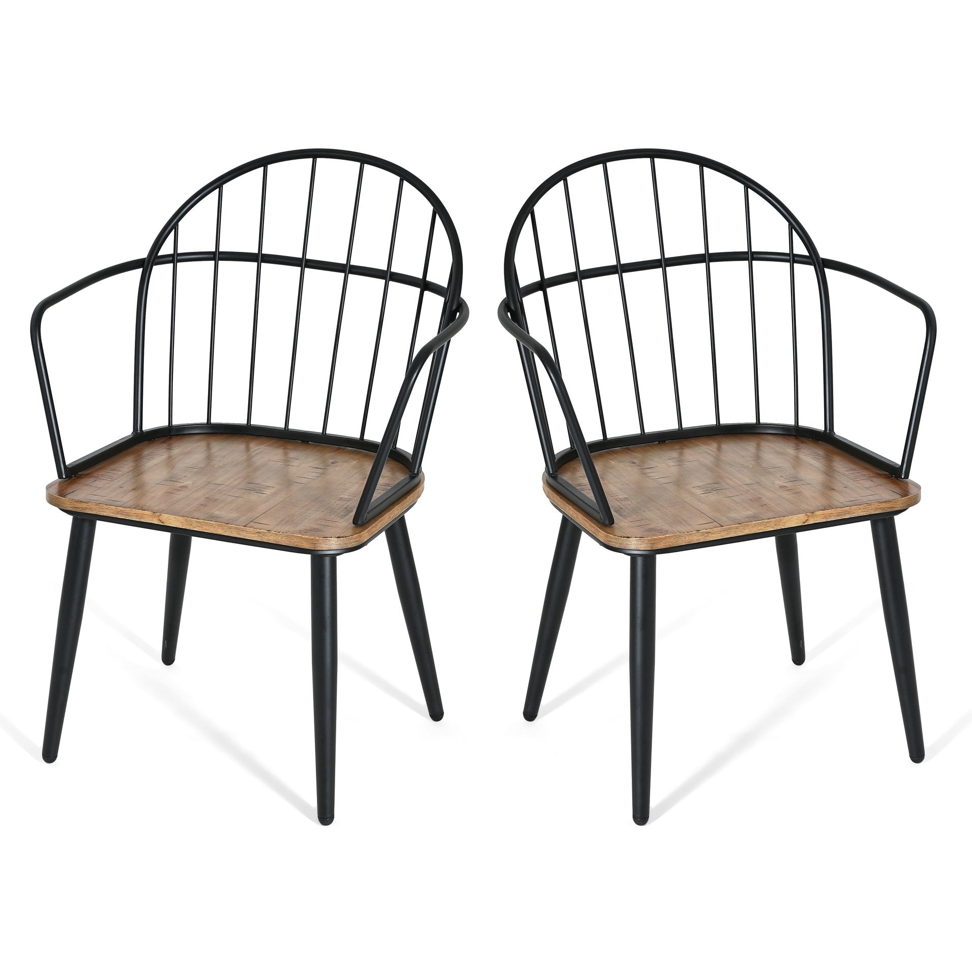 - Enjoy breakfast with a friend while saving on space with this 5-piece dining set. Crafted from metal and engineered wood, it features one square table and four dining chairs. Clean lines and light birch and black hue add to its industrial aesthetic that's just right in contemporary aesthetics.