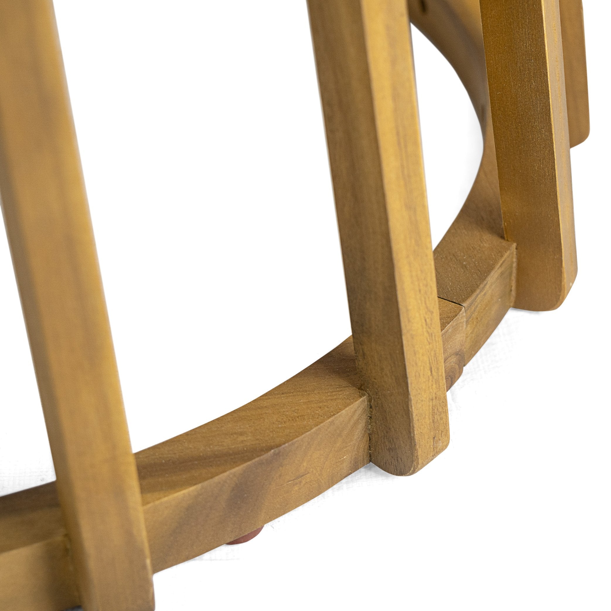 - Materials: Solid acacia wood for weather-resistant durability and a rich, natural finish