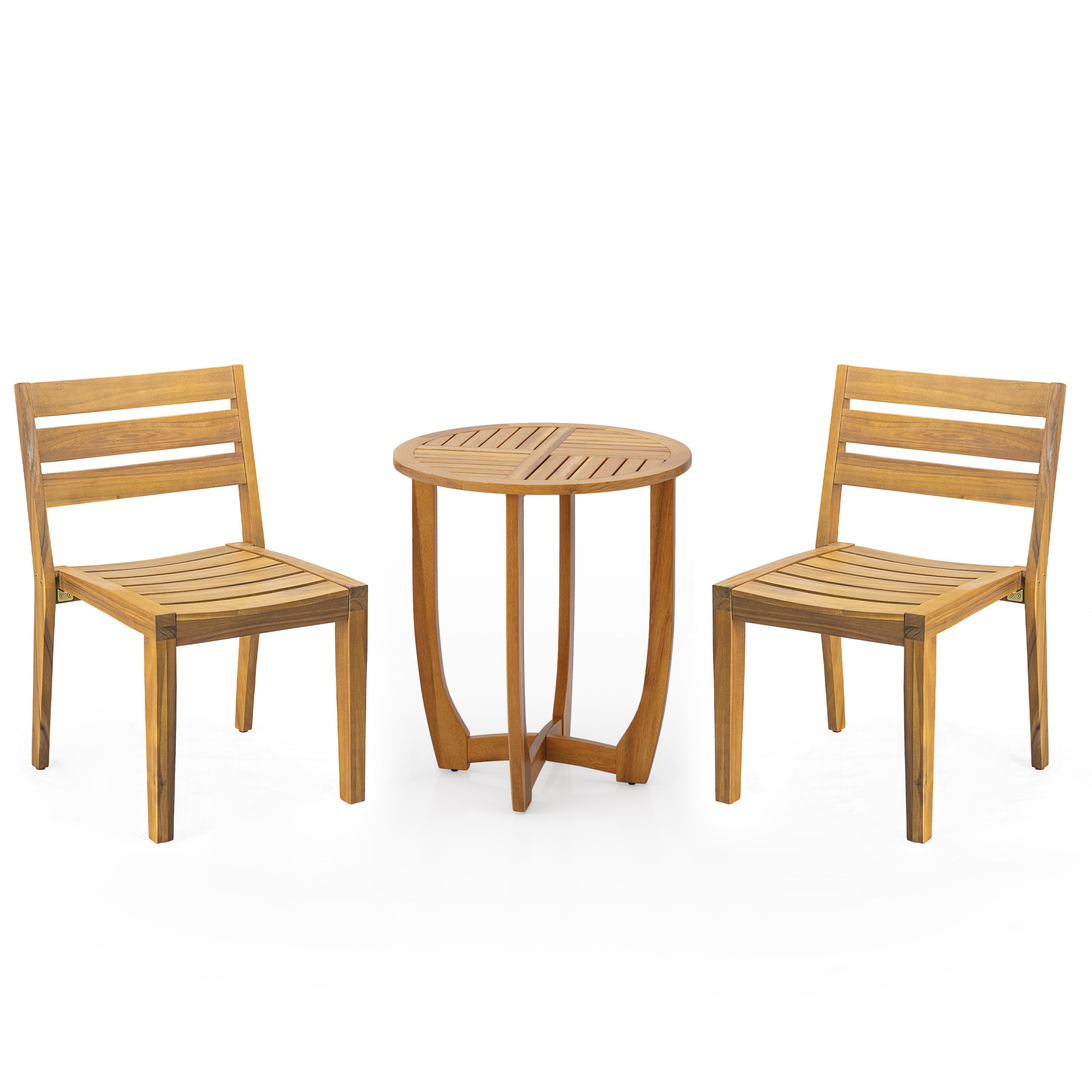 Enjoy relaxed outdoor meals with this compact 3-piece acacia wood dining set, designed for durability and a warm, natural look. Ideal for small patios, balconies, or cozy breakfast nooks, the set pairs solid acacia construction with a simple, timeless silhouette for effortless outdoor entertaining.