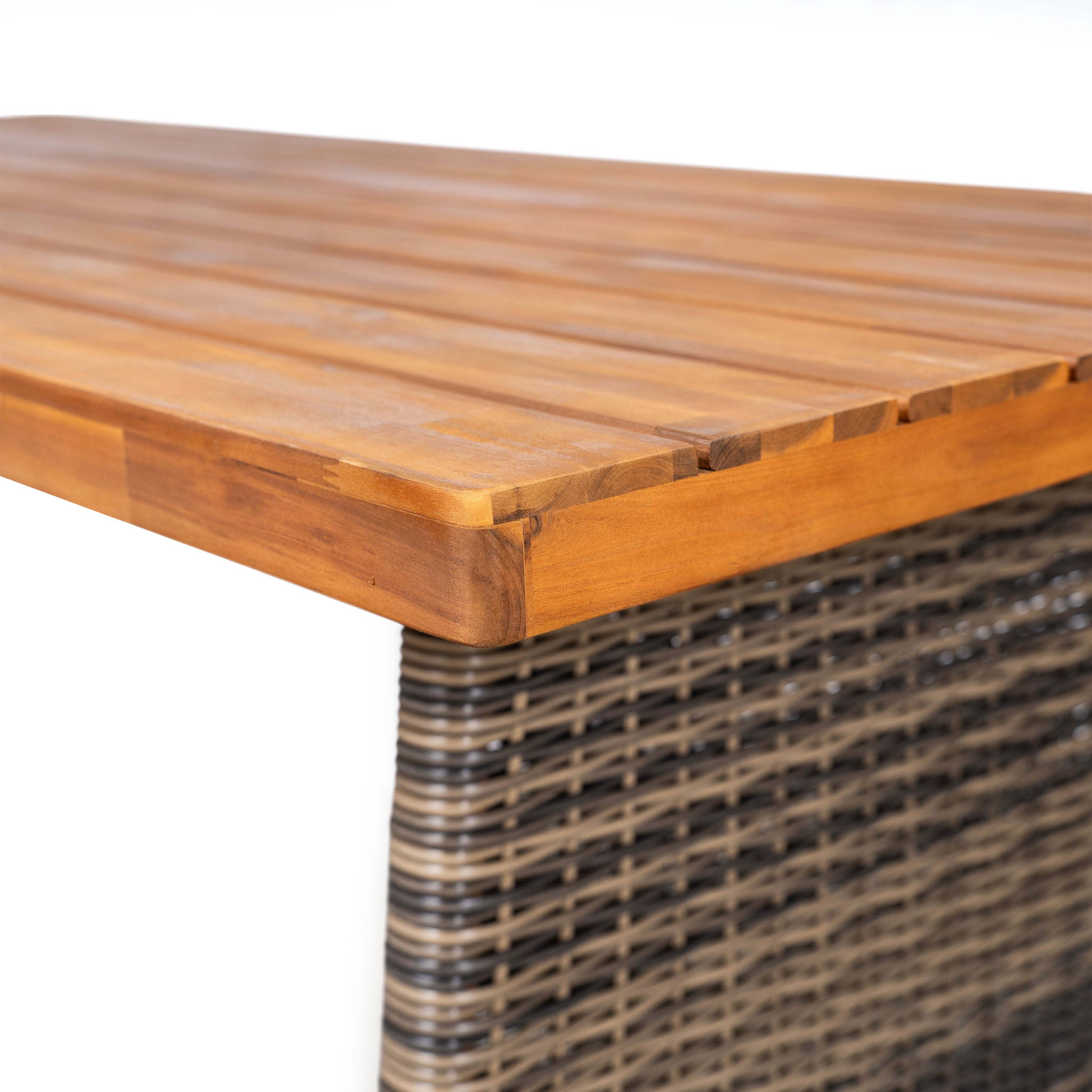 - Design highlights: Contemporary grey wicker legs and acacia wood surfaces create a warm yet modern aesthetic suitable for patios, decks, and sunrooms