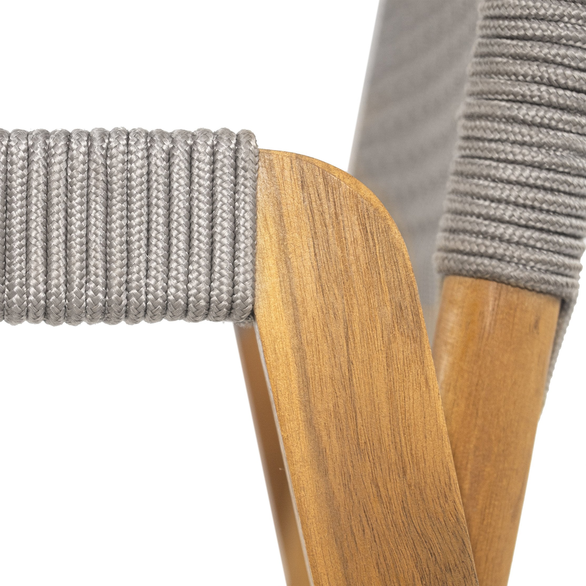 - Chair Construction: Acacia wood frame with handwoven grey rope detailing and a teak-finish frame color for a premium look.