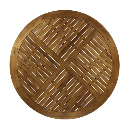 - Materials & finish: Solid acacia wood table with teak finish and waterproof coating; chairs combine acacia wood frames with tightly woven synthetic wicker for outdoor durability.