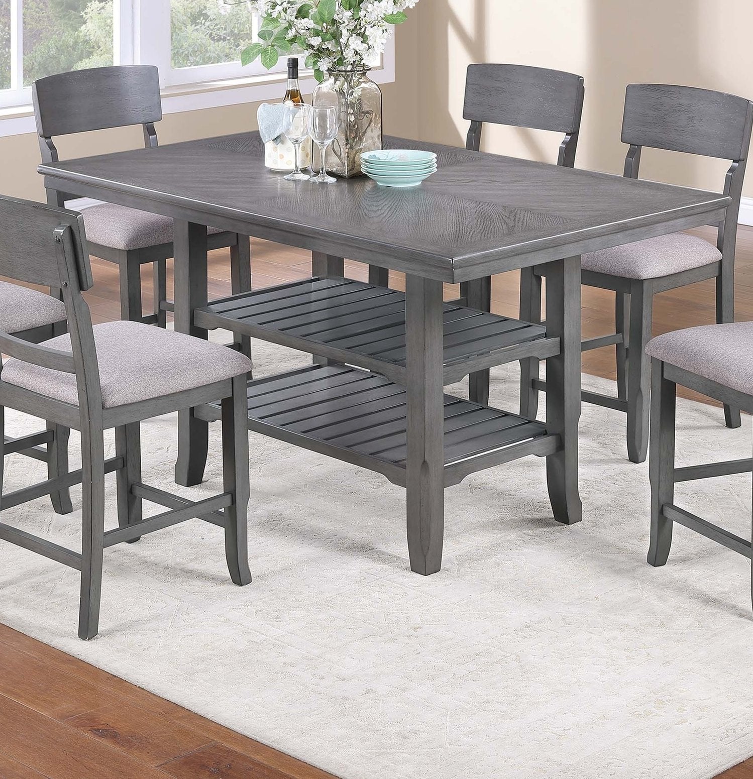 - Included: 7-piece set — counter-height dining table with two storage shelves plus six high chairs.