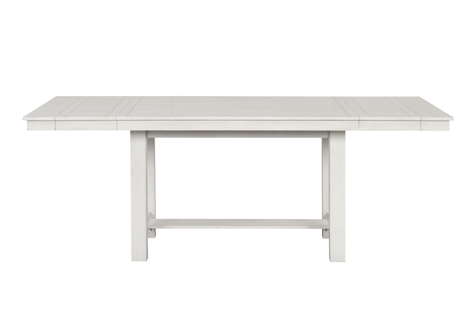 - Table features: Rectangular top with a removable side leaf for extension; sturdy block trestle base for stability