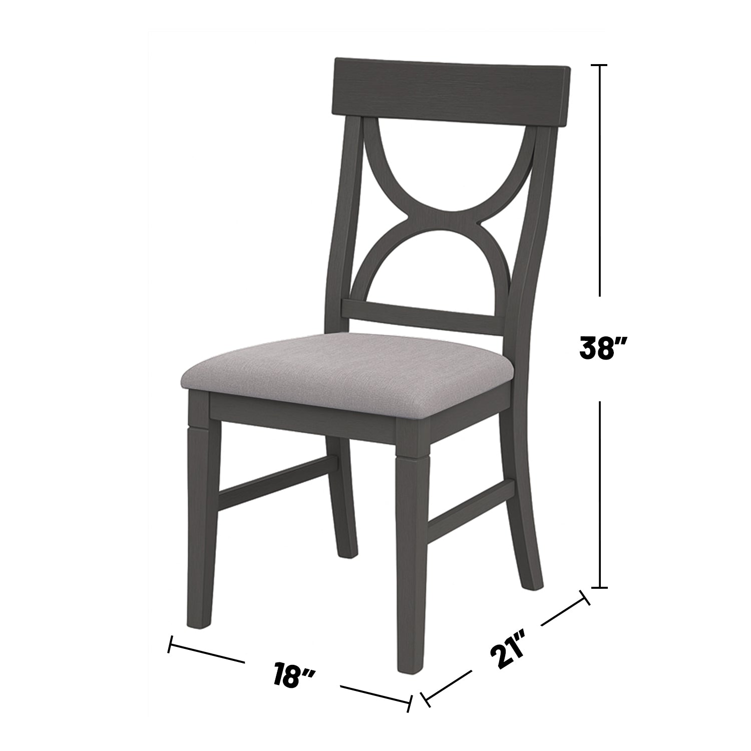 - Upholstery: Light gray poly-fiber upholstered seat cushions—durable, easy to clean, and comfortable for extended meals