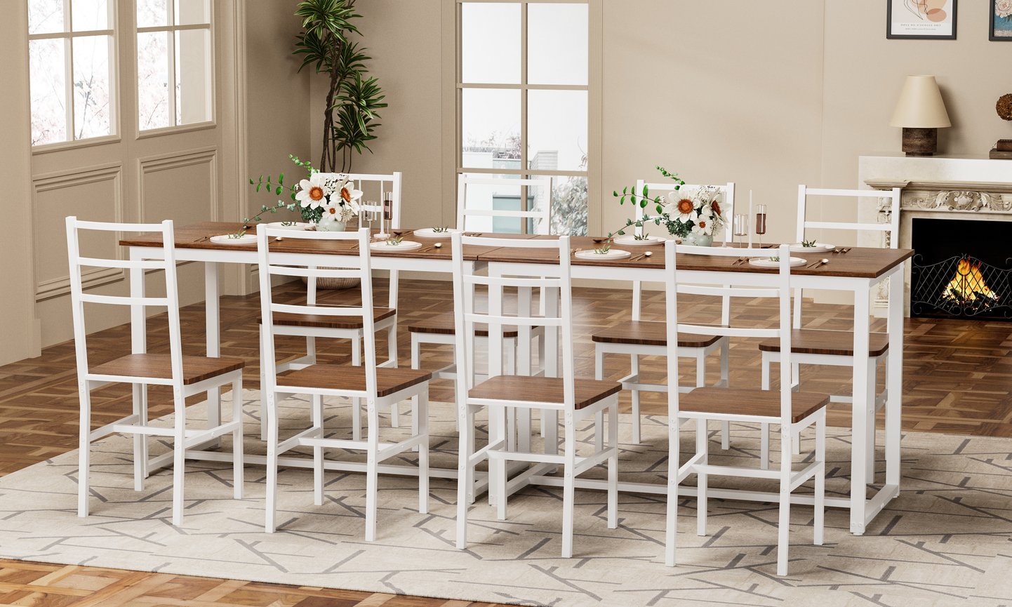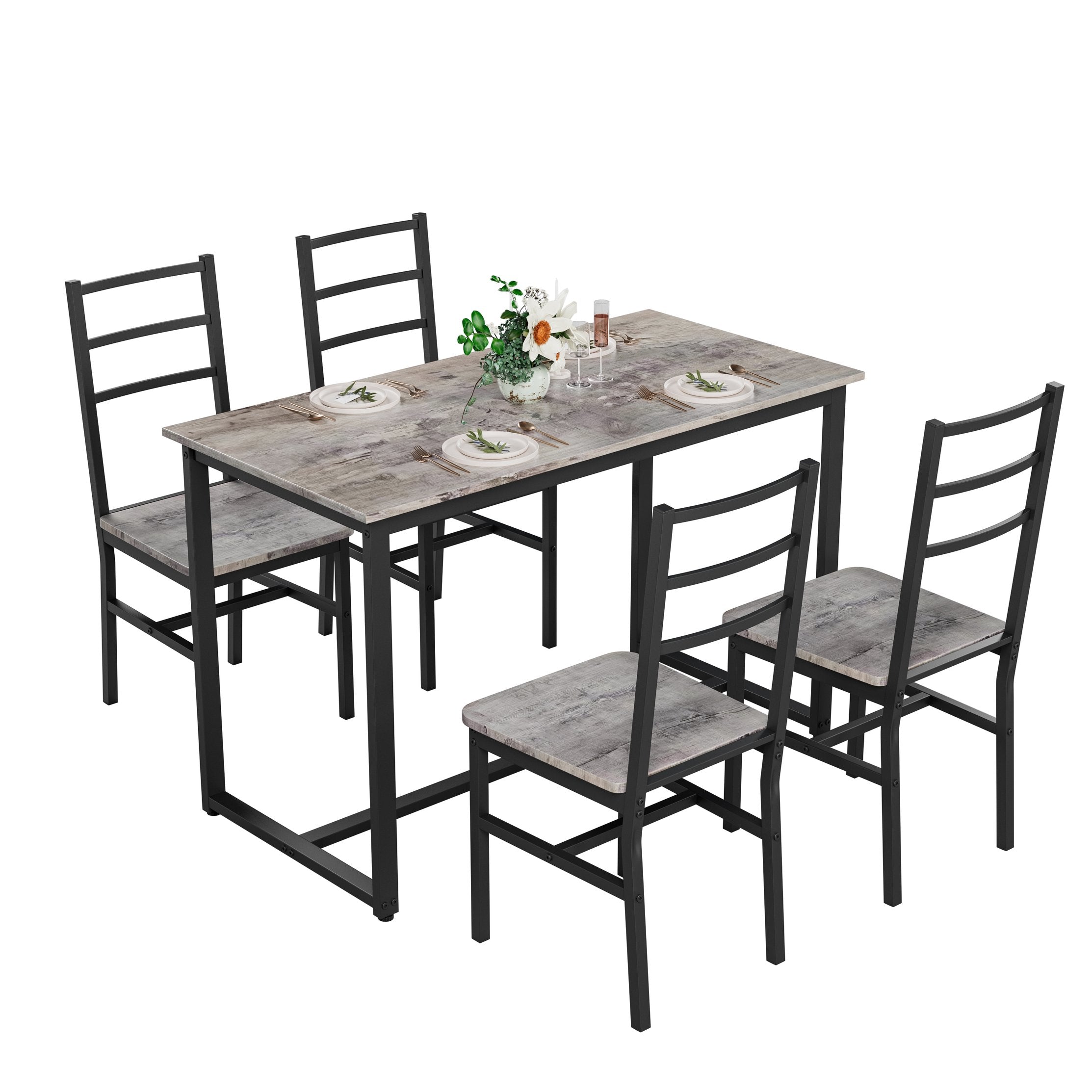 - Set includes: 1 rectangular dining table and 4 matching chairs (5-piece set).
