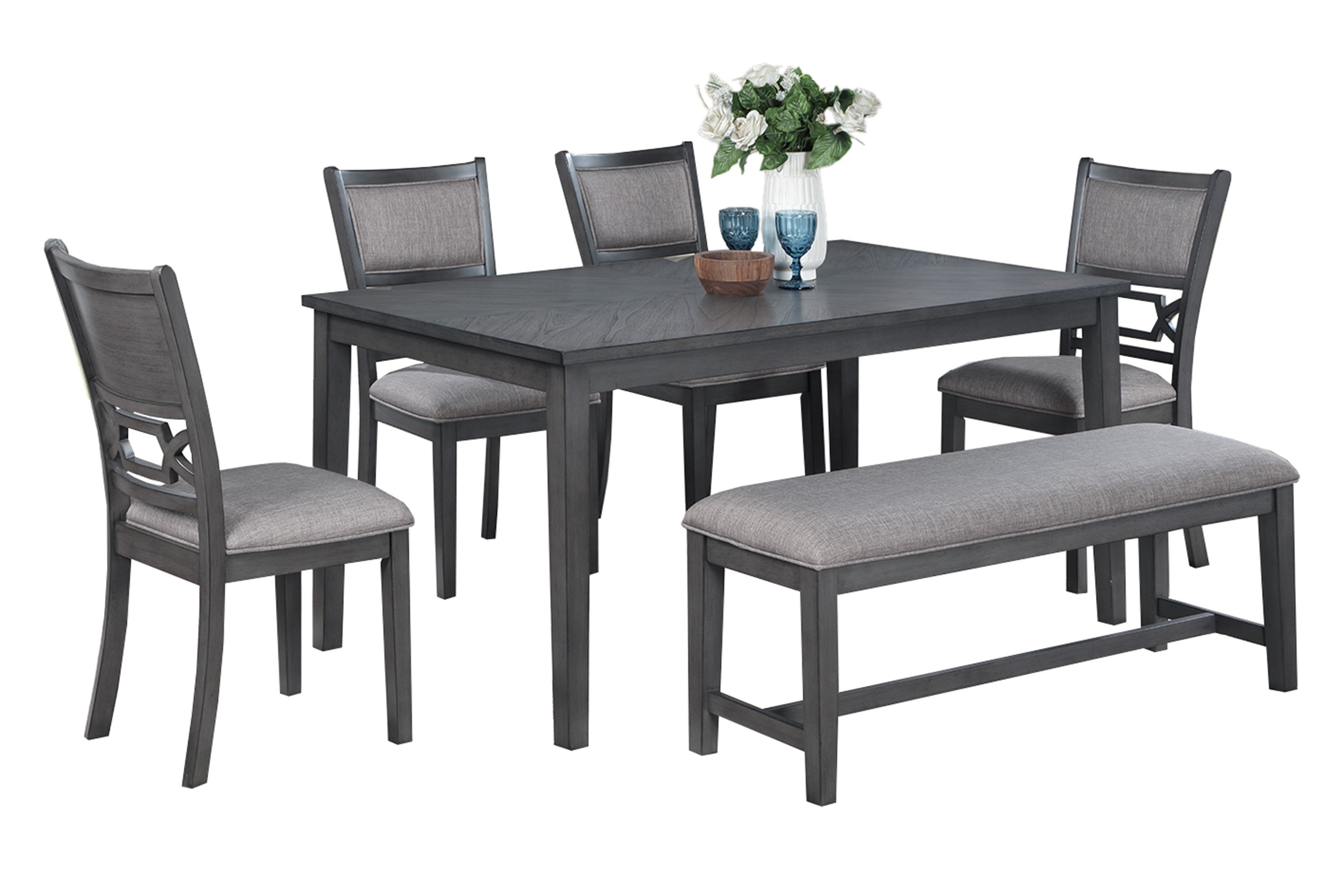 Bring modern comfort and clean, casual style to your dining space with this 6-piece gray dining set. Thoughtfully designed for everyday use and entertaining, the set pairs a roomy rectangular table with four upholstered side chairs and a padded bench to accommodate family meals and guests with ease. Durable rubberwood construction and neutral gray finishes provide long-lasting stability and a versatile look that complements a range of decor styles.