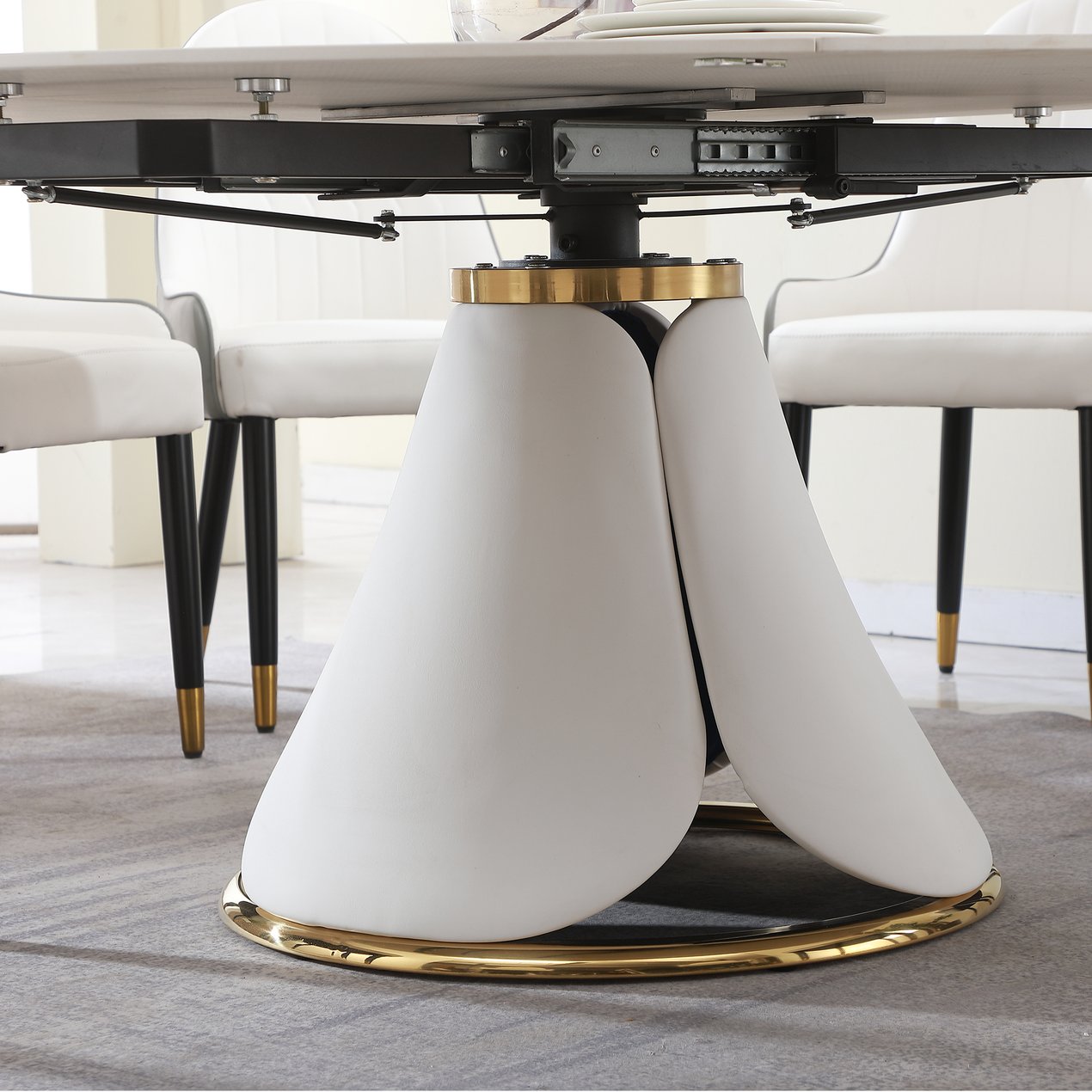 Upgrade your dining experience with a sleek, modern set that blends durable materials and smart design for everyday living. This multi-functional dining collection features a high-performance sintered stone tabletop, sturdy mixed-material legs, and six comfortable solid-wood chairs—perfect for compact homes that need flexible seating without sacrificing style or durability.