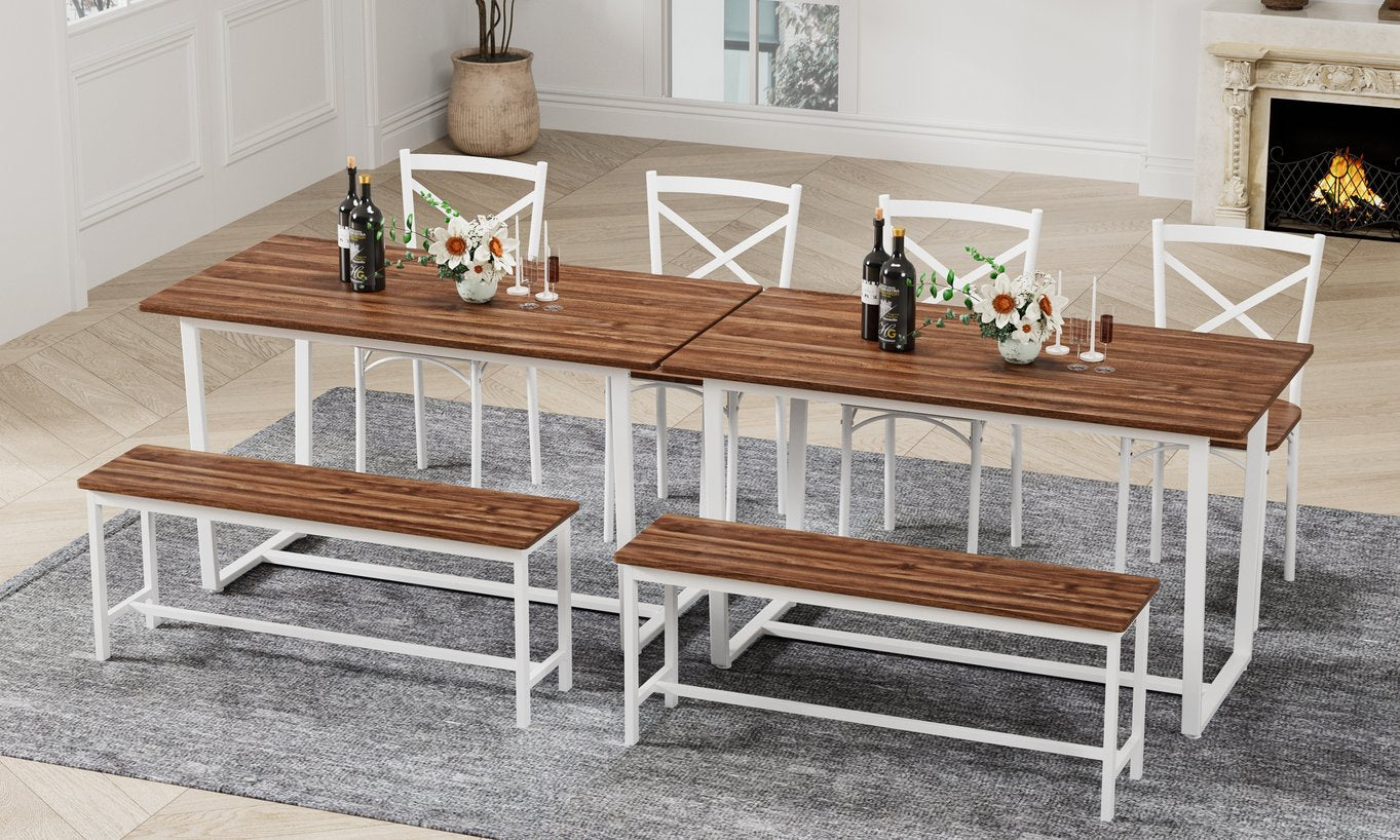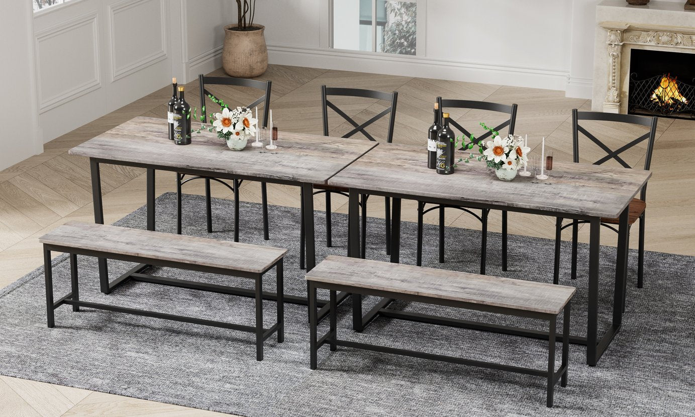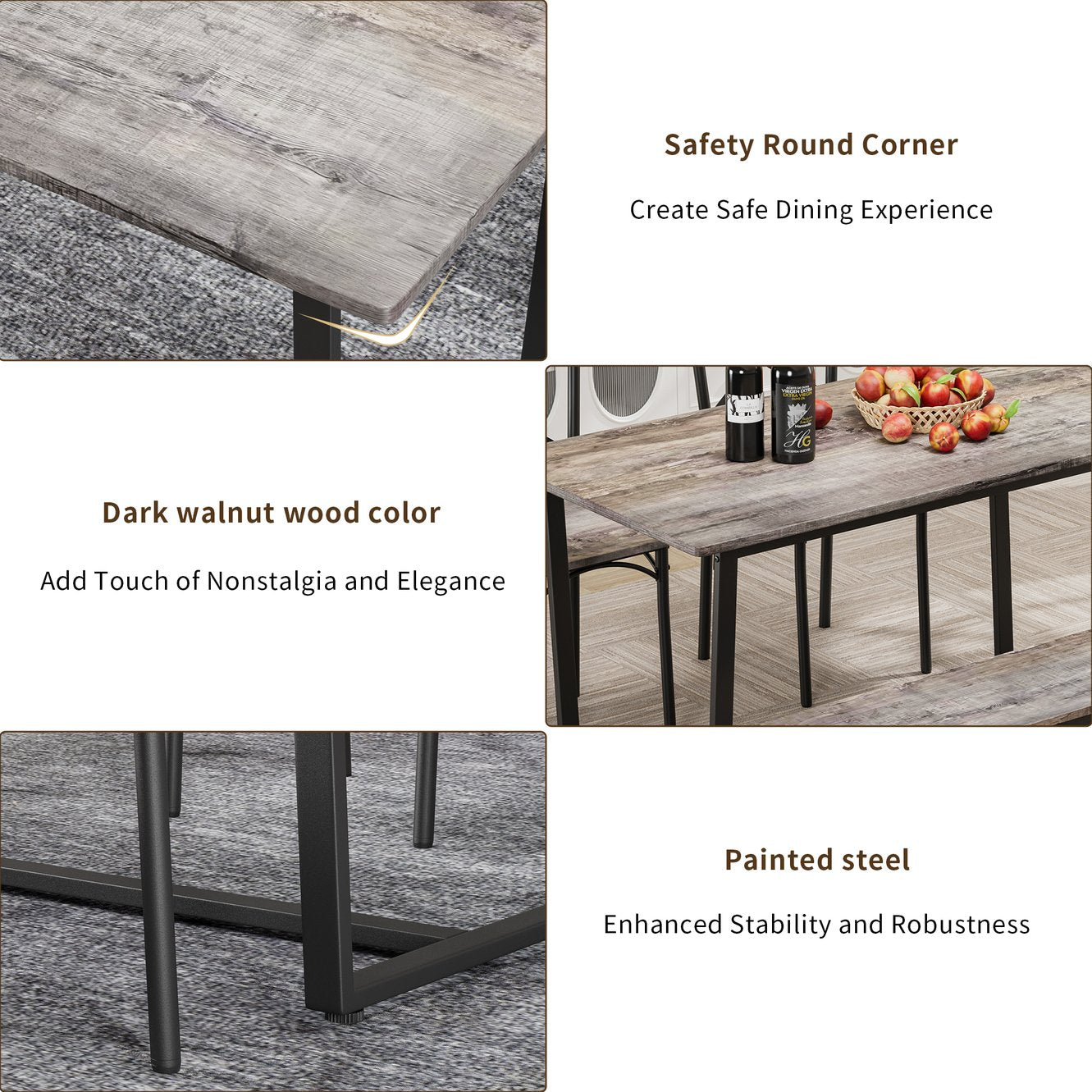 - Set Composition: Includes one table and four matching chairs plus a bench — seating for family and guests