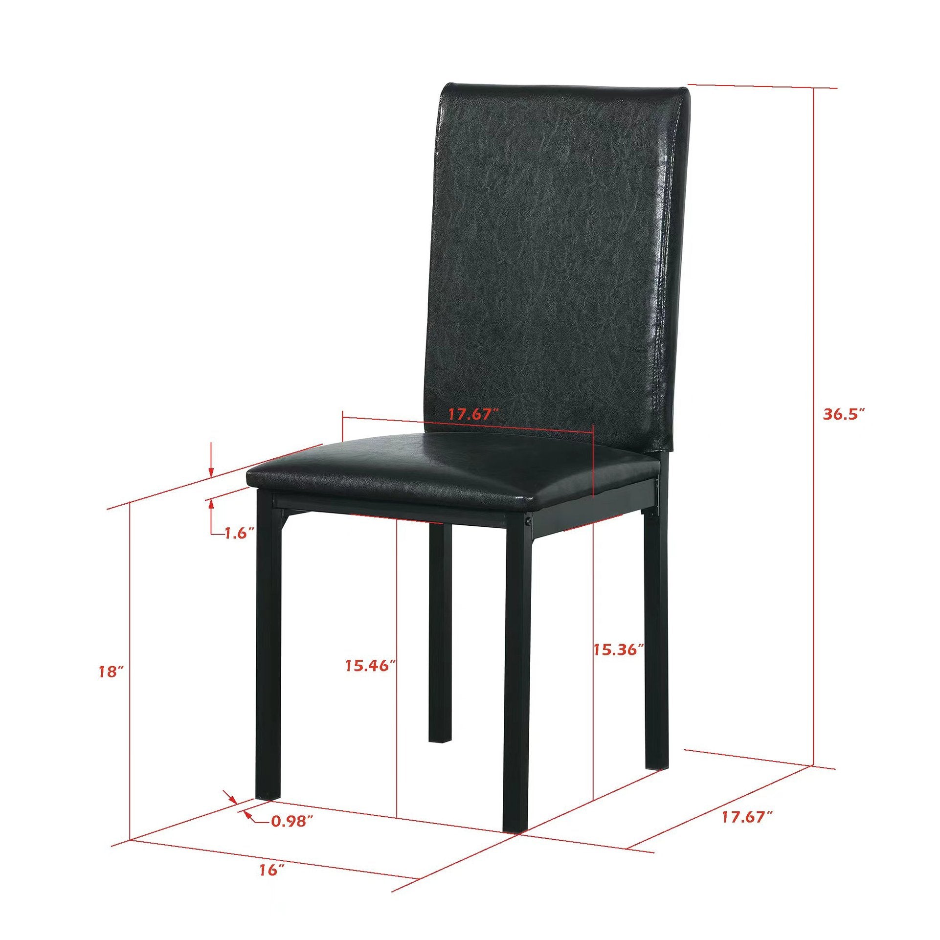 Bring contemporary style and everyday durability to your dining space with this 5-piece metal dinette set. The sleek black metal frame and faux marble tabletop create a modern, easy-care look that works well in apartments, kitchens, or casual dining areas. Comfortable, vinyl-upholstered chairs and a sturdy metal apron ensure reliable support for meals and gatherings, while the compact footprint makes this set ideal for smaller rooms.