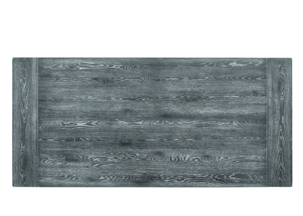 - Materials & finish: Weathered gray finish on veneer and composite wood components, combining oak veneer, particleboard and solid-appearance turned detailing for a farmhouse aesthetic.