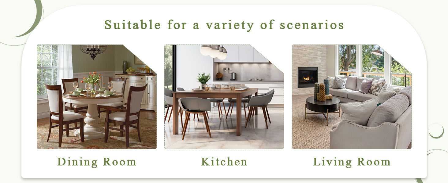 - The spacious 63-inch tabletop provides ample room for dining and gatherings. It comfortably accommodates everything from daily family meals for four to festive feasts for up to eight.