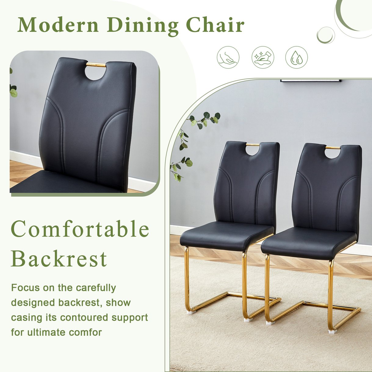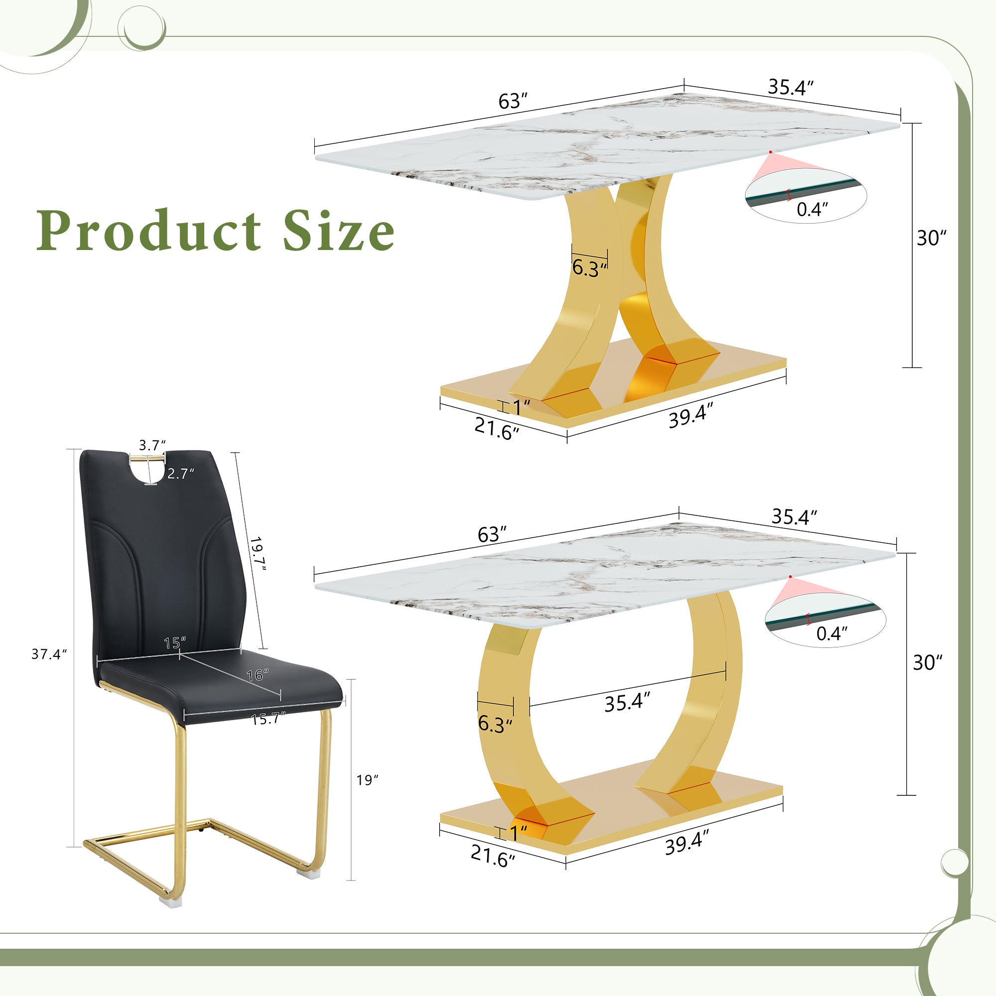 Elevate your dining area with this modern, minimalist dining set that combines luxe marble-patterned pressed glass and subtle gold accents with comfortable, contemporary seating. Designed for both style and everyday functionality, the set is ideal for small to medium dining spaces and offers easy setup with a foldable table and supportive U-shaped armchairs.