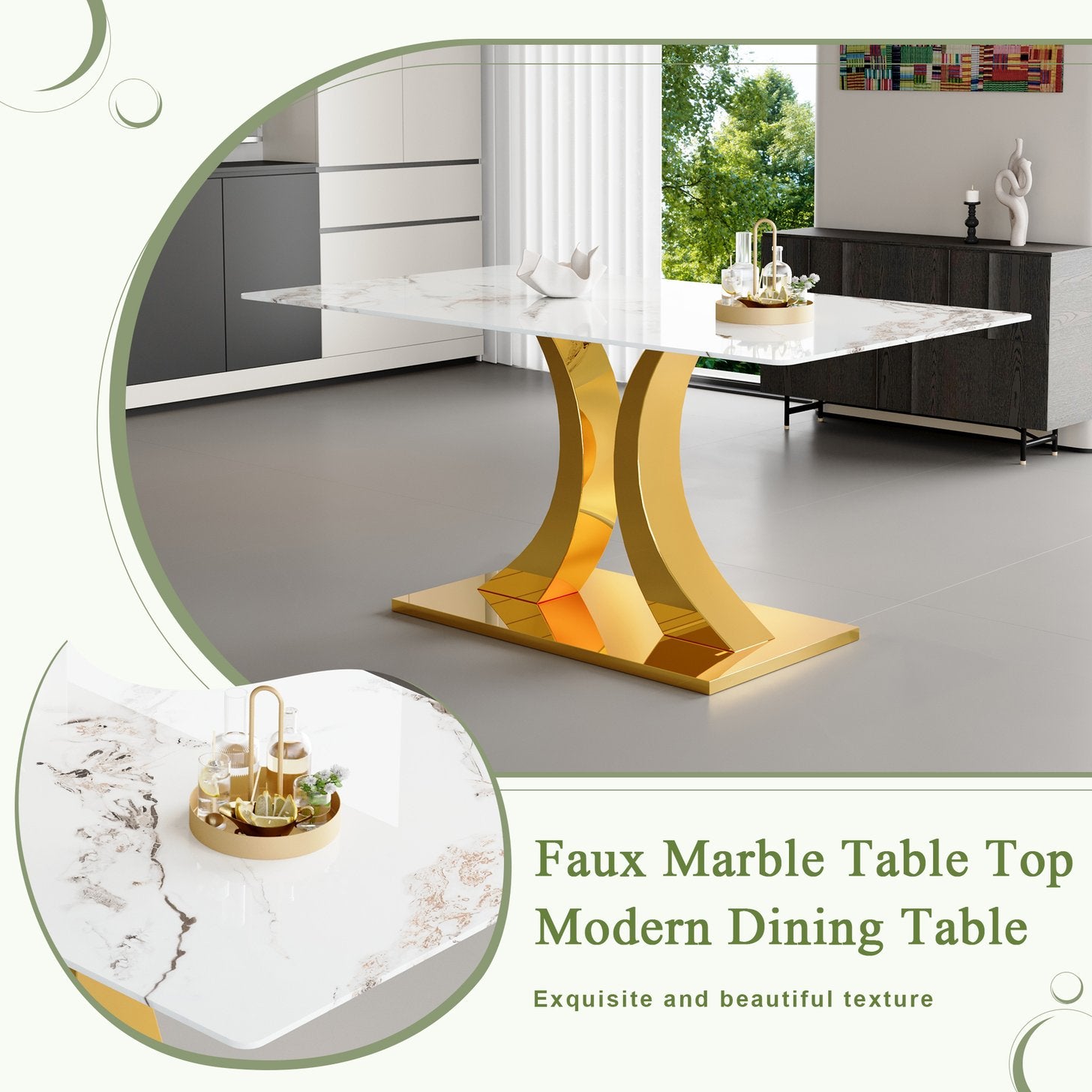 - Premium materials: Marble-patterned pressed glass tabletop with gold decorative trim for a sophisticated, durable surface