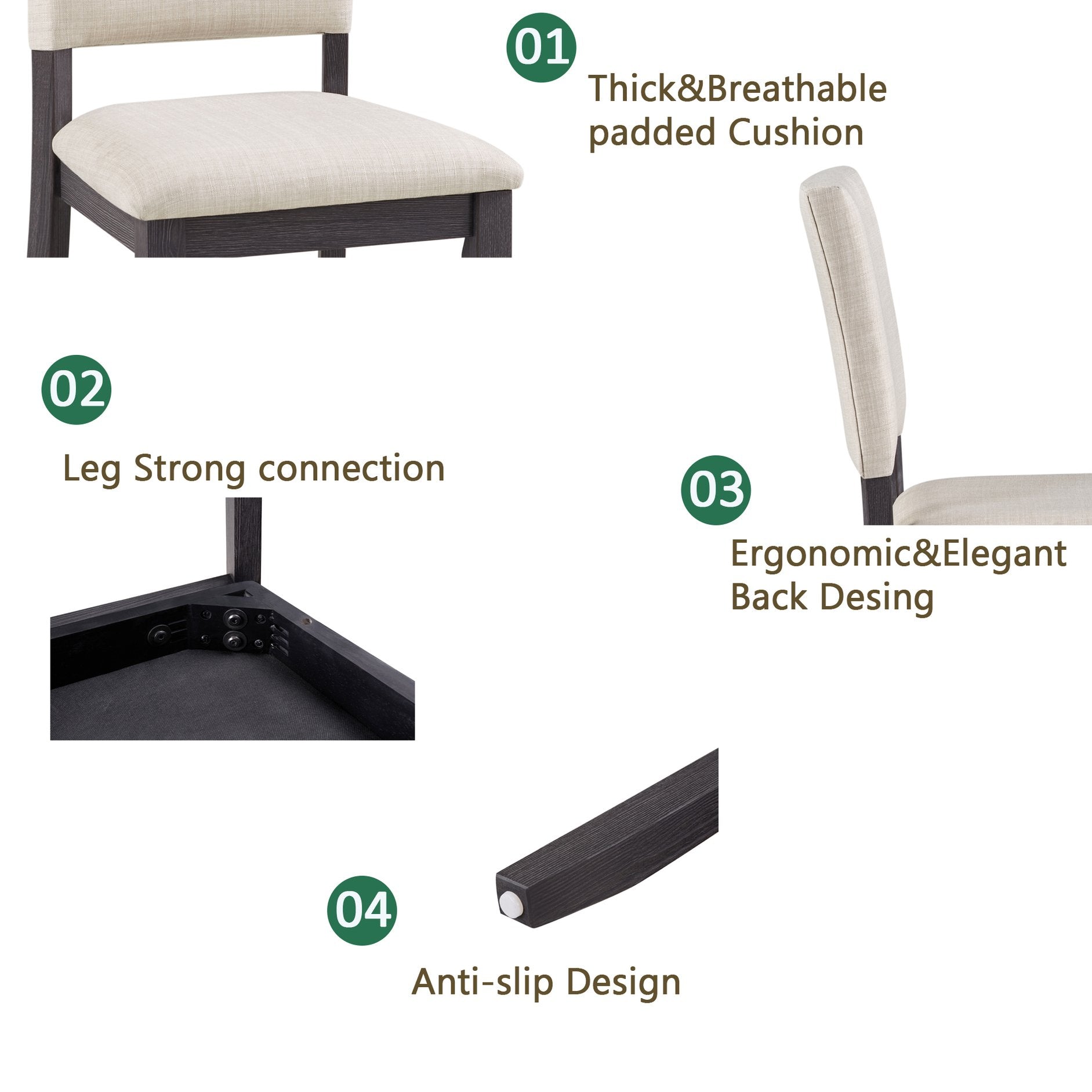 - Comfortable Seating: Chairs feature breathable beige fabric upholstery over soft foam for comfortable, supportive seating during meals and gatherings (chair capacity: 330 lbs).