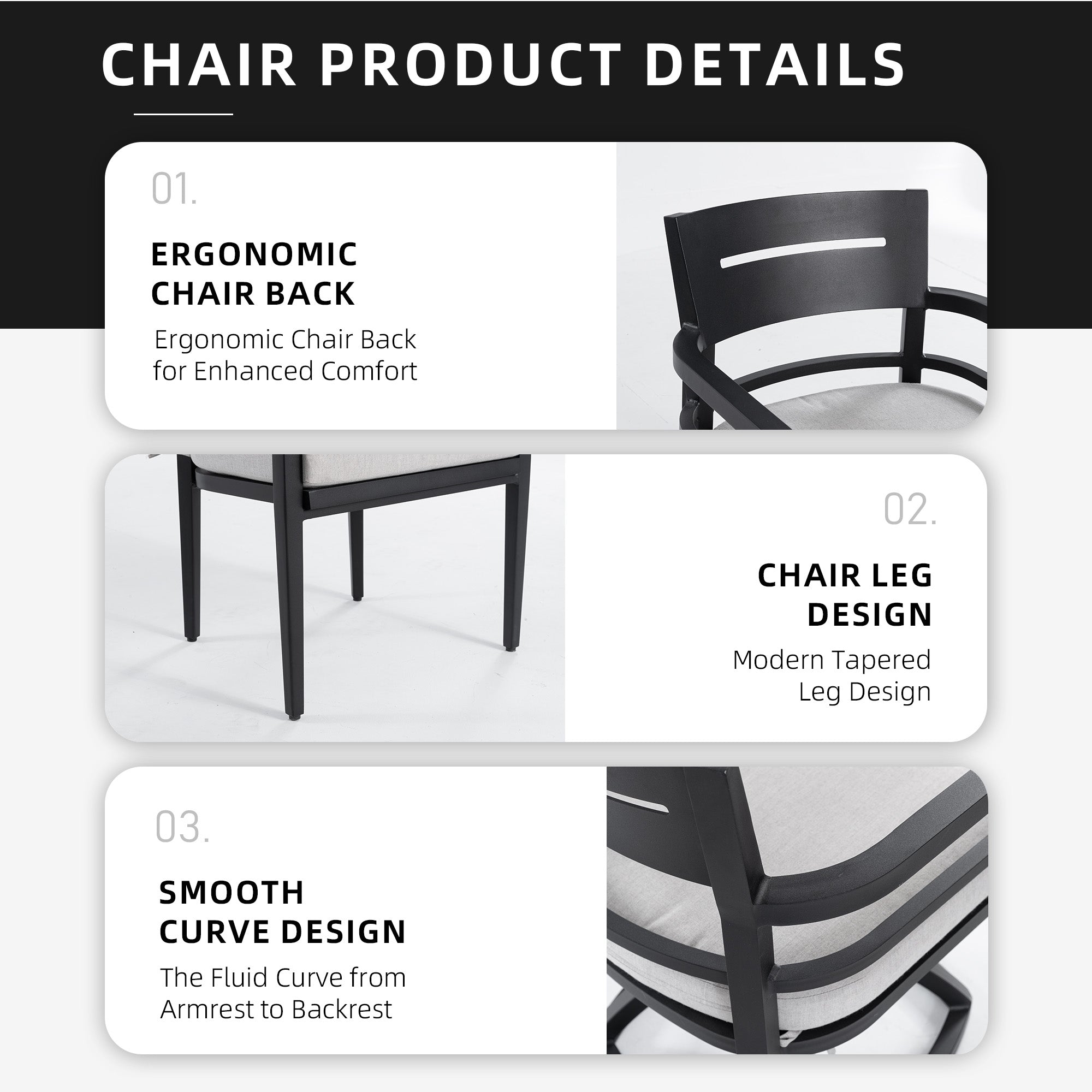 - Frame & Finish: Ember Black powder-coated aluminum frames for rust-free, weather-resistant durability