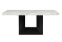 Bring contemporary elegance and sturdy craftsmanship to your dining area with this 5-piece dining set. The striking white faux marble tabletop pairs with a natural wood-look finish and sculptural angled base to create a modern focal point, while four comfortable chairs complete the ensemble for everyday meals and entertaining.