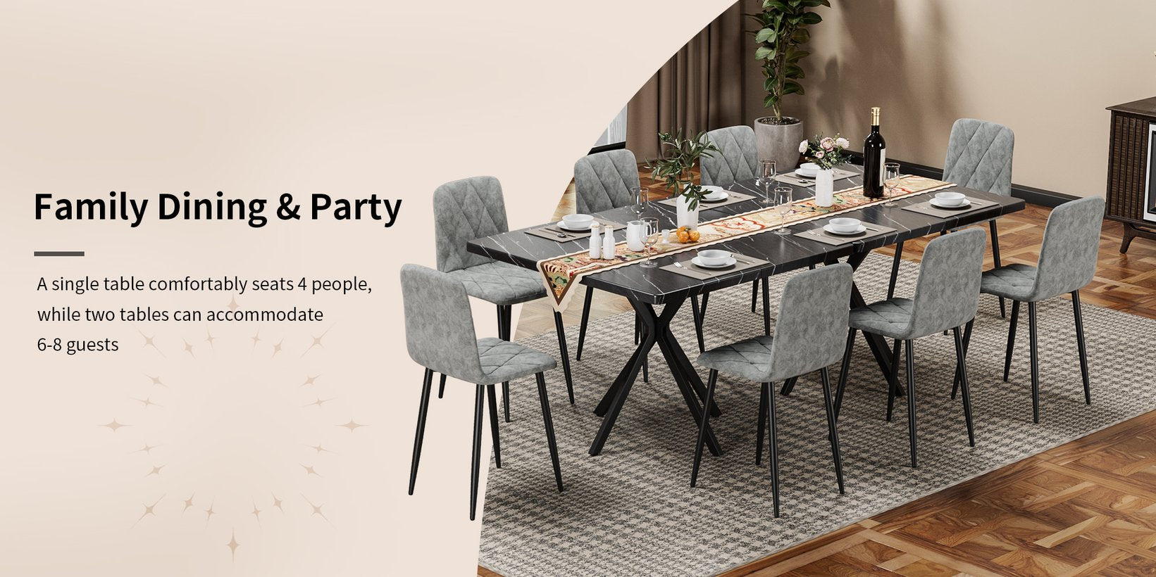 - Wide Application: The stylish dining table set comes with simple tabletop and chairs, provides ample space for placing cutlery, decorative plants, desserts, etc. It can be used as dining table, coffee table, breakfast table, conference guest table.