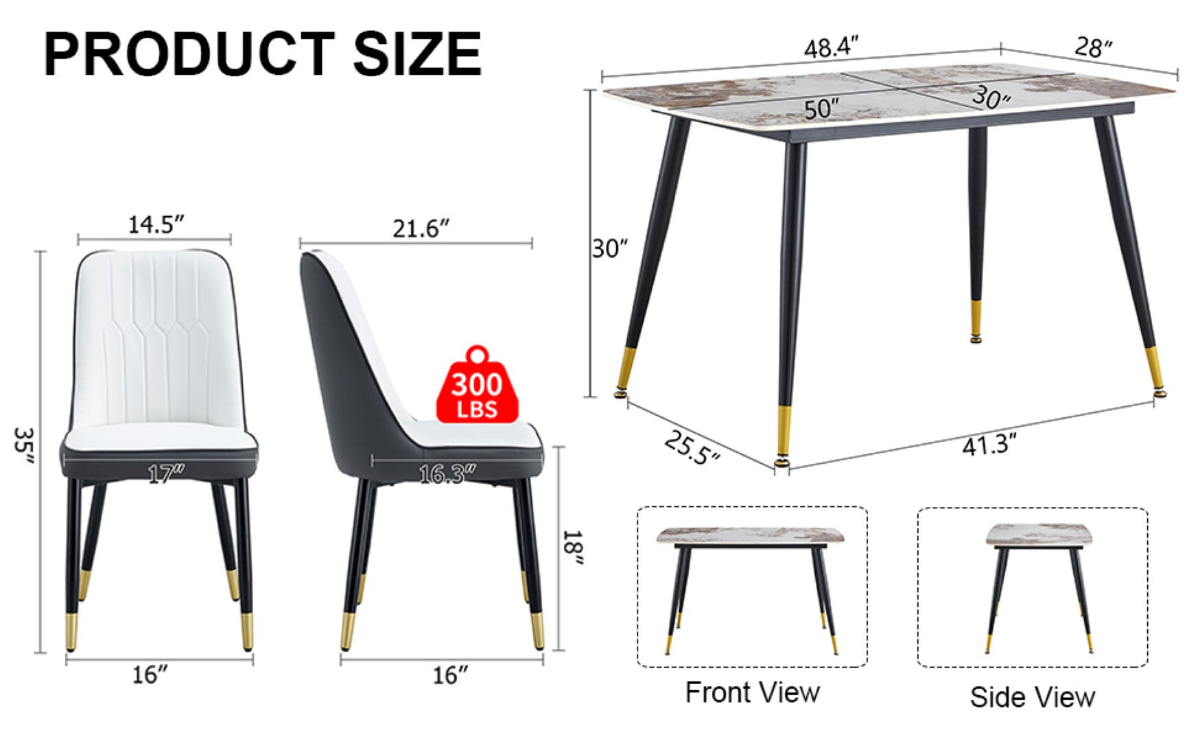 - Set composition: 1 sintered stone dining table + 4 PU upholstered dining chairs (white & dark gray spliced color).