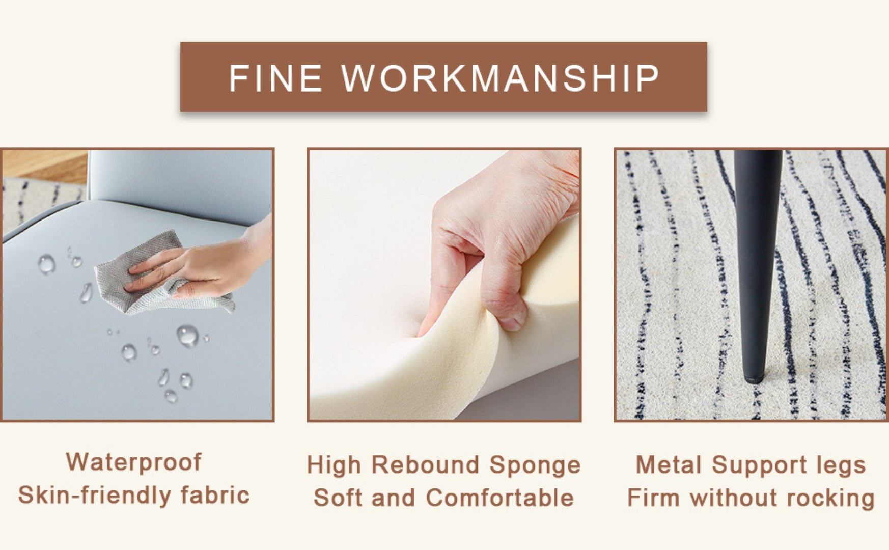 - Materials: MDF tabletop, PU upholstery, metal frames—built for everyday durability and easy maintenance