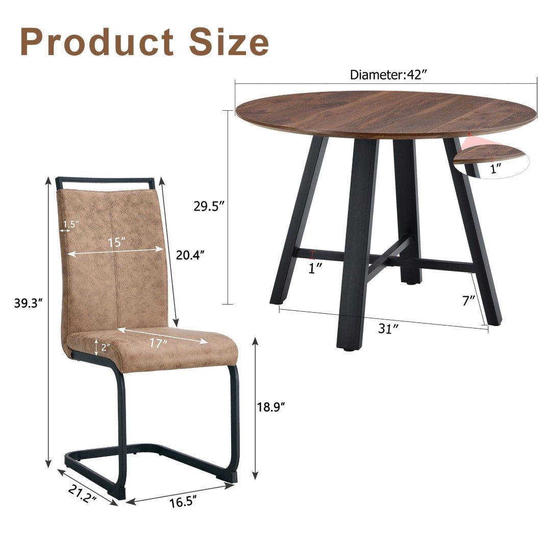 - MDF Dark Walnut Textured Tabletop: The table features an MDF structure with a dark walnut texture sticker and is 42 inches in diameter for a natural warmth.