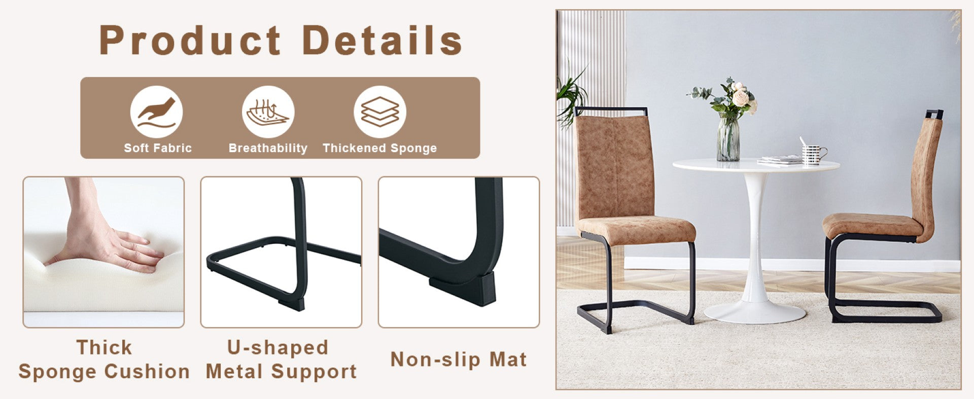 - Modern style design: This brown technology cloth dining chair adopts a simple modern design style, perfectly integrating fashion and practicality, adding a touch of modern atmosphere to your restaurant or kitchen.Which is wear-resistant, dirt resistant, and easy to clean, while maintaining good breathability and comfort.