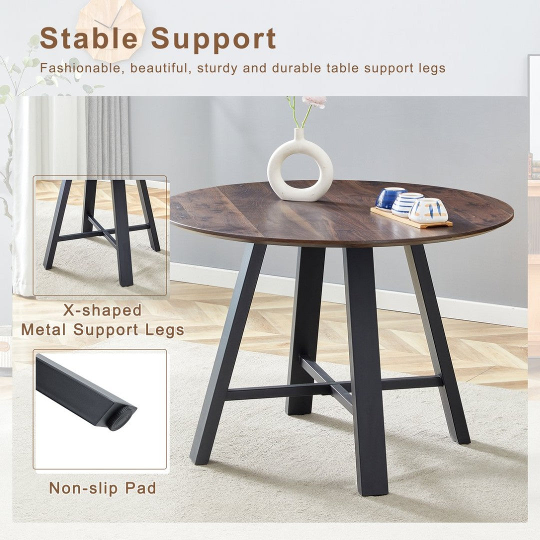 - MDF Dark Walnut Textured Tabletop: The table features an MDF structure with a dark walnut texture sticker and is 42 inches in diameter for a natural warmth.