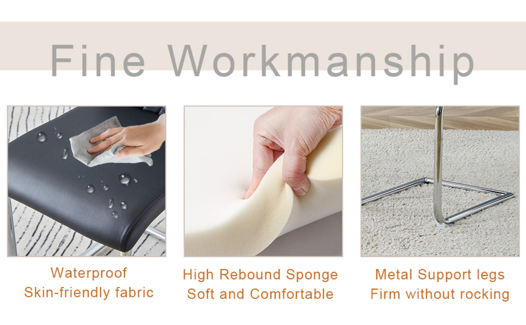 - Grid PU Backrest: The backrest and seat cushions of the dining chairs are made of PU material , enhancing the aesthetics and comfort of the seats, while being easy to clean and maintain.