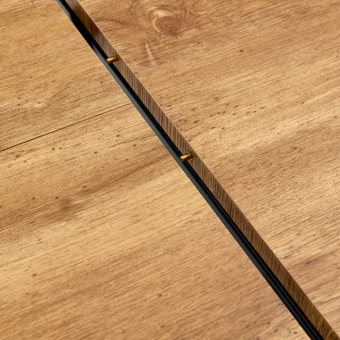 Modern, space-smart dining for everyday living and entertaining. This extendable wood-MDF dining set combines a clever telescopic table with four comfortable PU-upholstered chairs to give you a flexible, stylish solution for small and growing gatherings. Neutral wood tones, black metal legs and subtle gold accents make this set easy to integrate into contemporary and transitional interiors while durable materials ensure long-lasting use.
