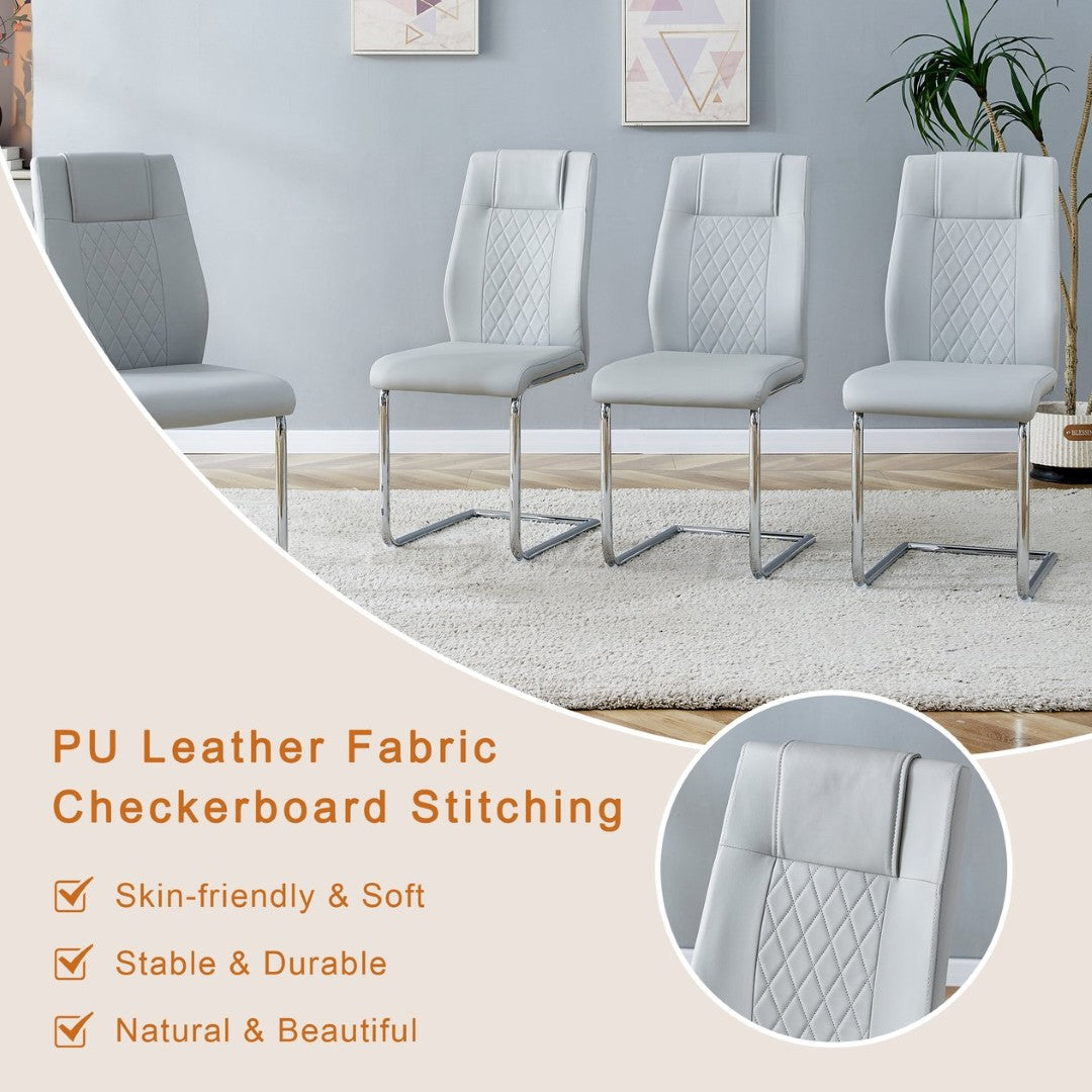 - Grid PU Backrest: The backrest and seat cushions of the dining chairs are made of PU material , enhancing the aesthetics and comfort of the seats, while being easy to clean and maintain.