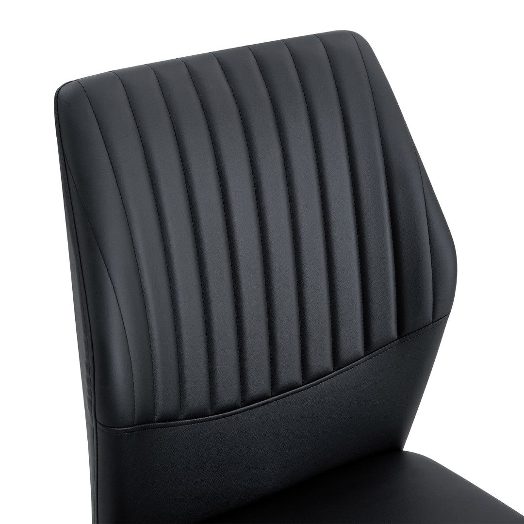 - Material application: The backrest and seat cushion are made of black PU synthetic leather material, which has good wear resistance and faux leather texture, giving the chair a delicate appearance and easy daily cleaning and maintenance; Internally filled with high-density sponge to ensure a comfortable sitting experience and excellent resilience, effectively relieving the pressure of prolonged sitting.