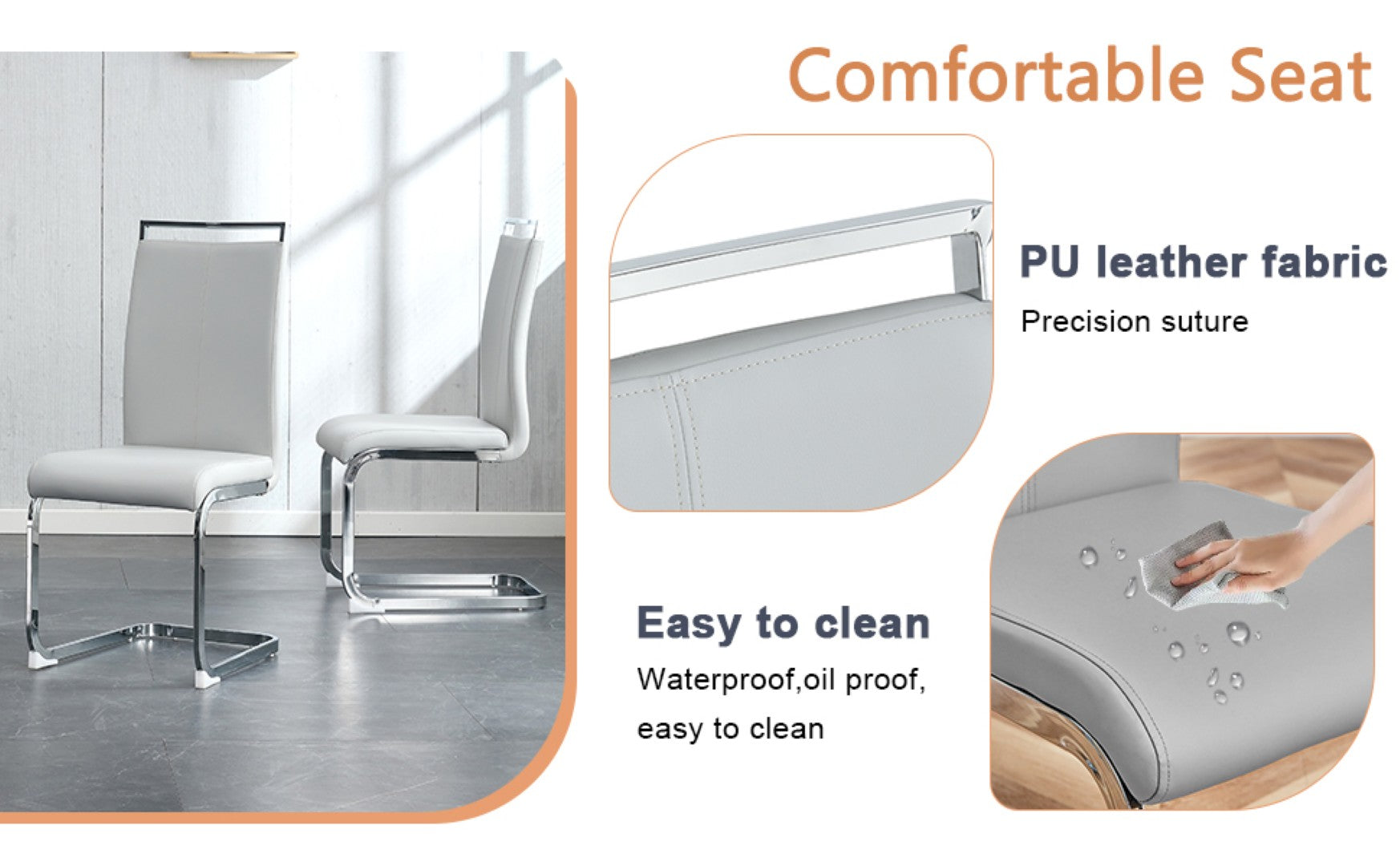 - Durable materials: Chairs have high-quality, wear-resistant PU upholstery and sturdy arched silver metal legs for long-lasting support.