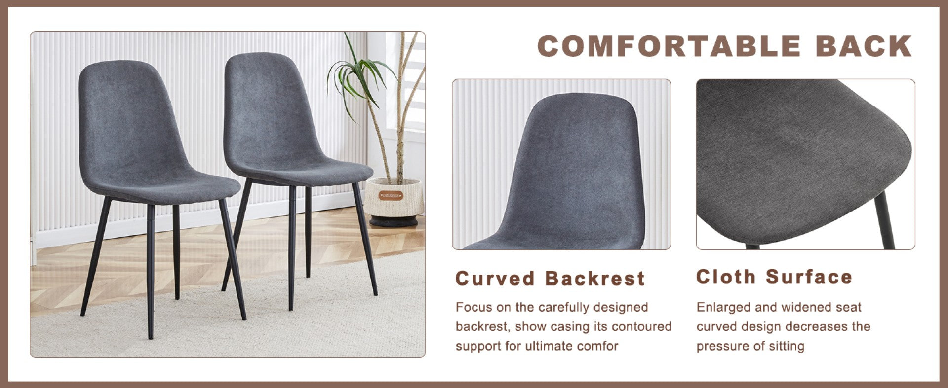 - Dark Grey Linen-Cotton Texture: The dining chairs are made of dark grey linen-cotton fabric, with integrated seat and backrest design, solid color style, breathable and soft comfort,offering a warm and comfortable touch while presenting an elegant home atmosphere.Comfortable Experience: Thoughtful ergonomic design, ensure comfort during long periods of use.