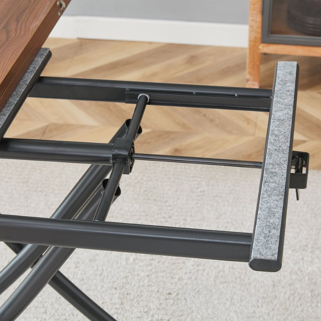 - Adjustable Lift Table: 0.8" thick MDF desktop with walnut wood-grain finish; table height adjusts from 18.3" to 29" to suit sitting or standing use.