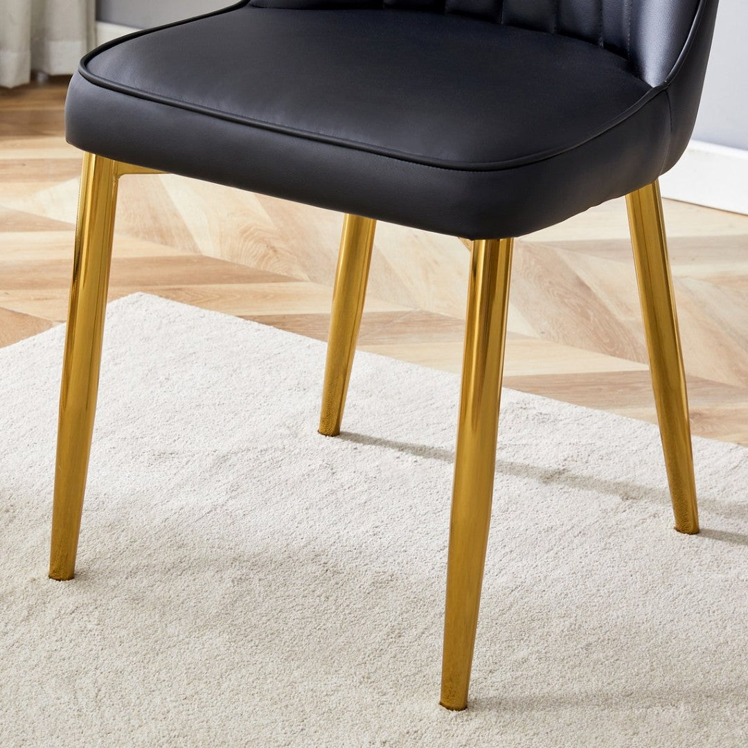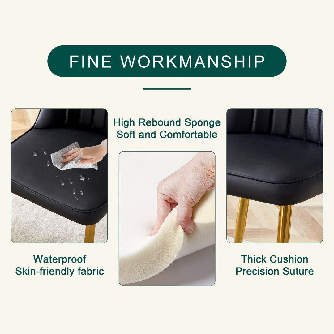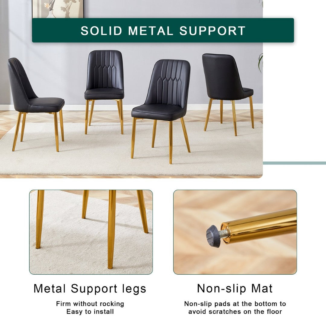 - Black Padded Chairs: The chairs are equipped with black padding, providing a comfortable seating experience, complementing the gold frame and enhancing the overall appearance.Non-Slip Feet: Equipped with non-slip feet to ensure stable placement on various surfaces, enhancing safety.