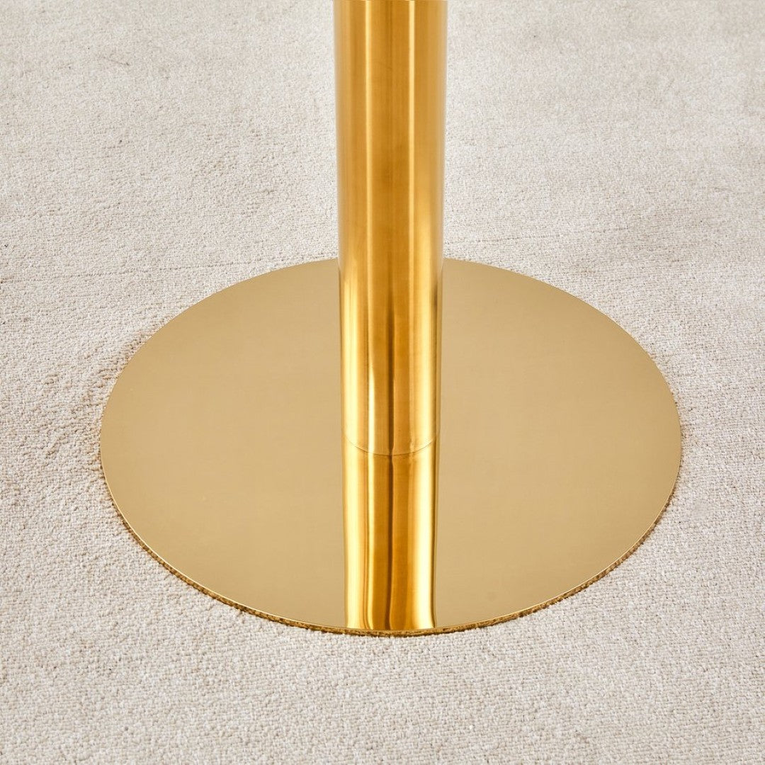- Table Base: Sturdy gold-finish metal stand featuring cylindrical straight legs and a circular base for reliable support and modern minimal styling.