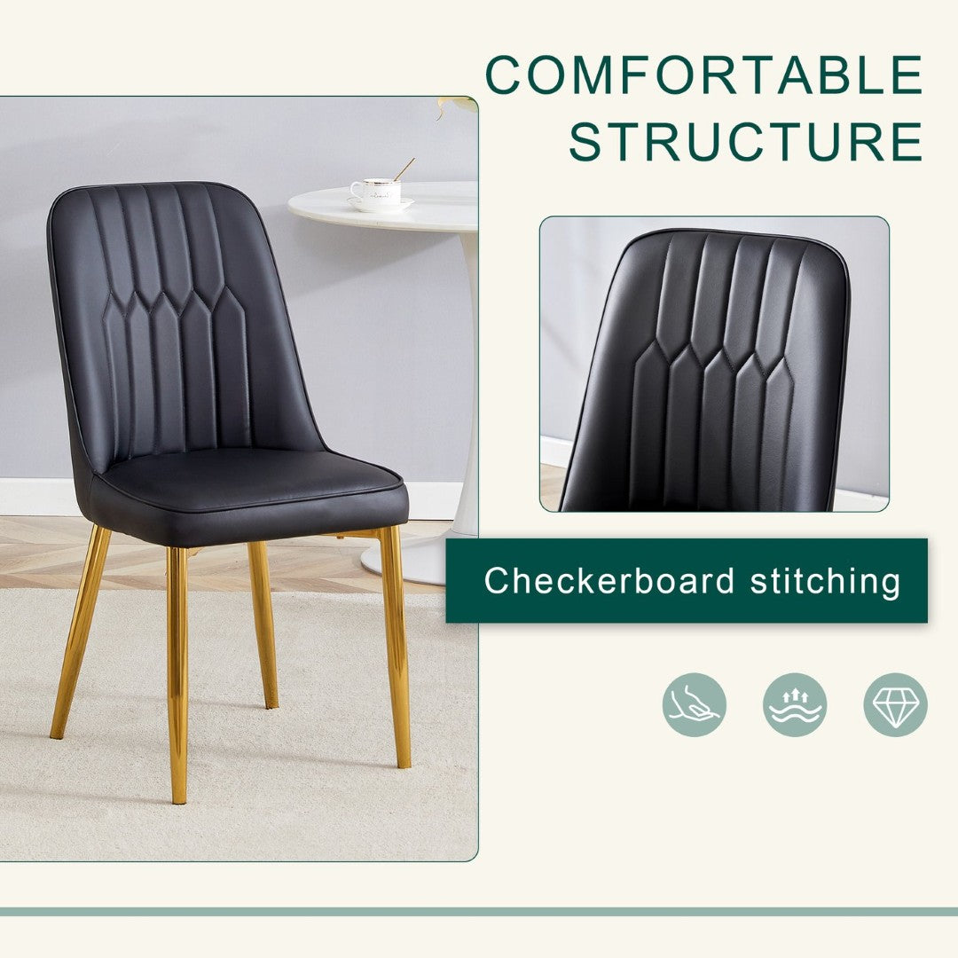 Elevate your dining area with this contemporary table and chair set that blends elegant marble aesthetics with modern metallic accents. Ideal for small dining rooms, breakfast nooks, or multifunctional workspaces, the set pairs a white marble-pattern round tabletop with four comfortable black PU chairs to create a chic yet practical ensemble for everyday use.