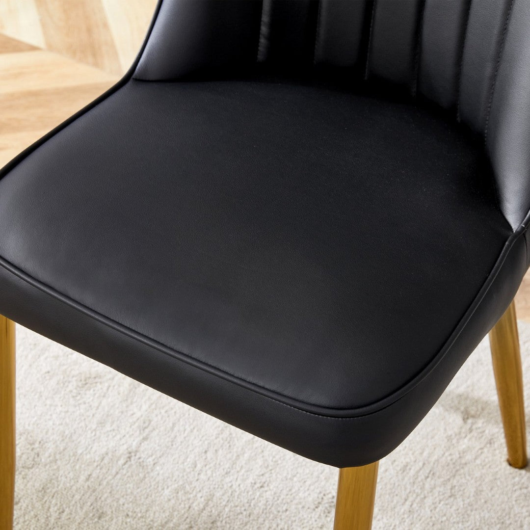 - Chairs: Four black PU-padded seats with ergonomic backrests and simple line designs on the backrest, offering comfortable support for extended use.
