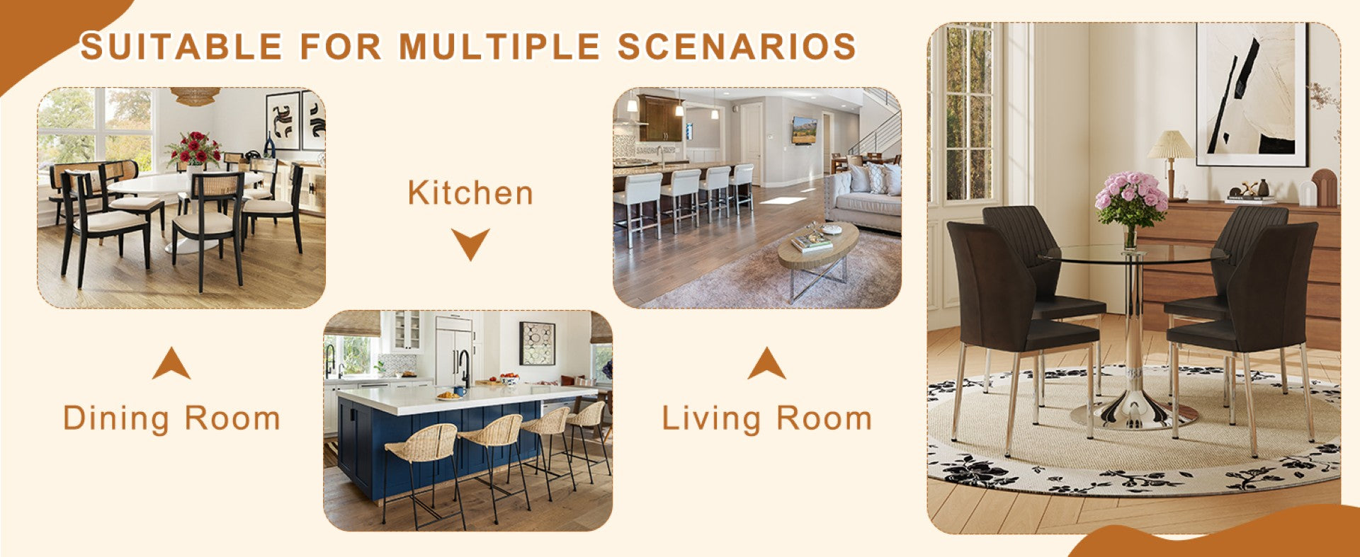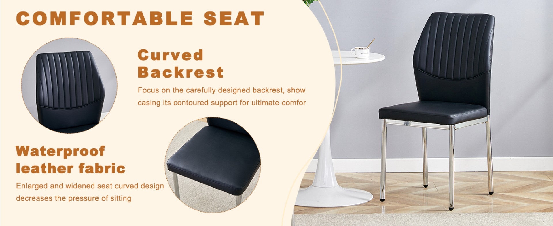 - These chairs, with their modern design, comfortable seating experience, and versatility, are perfect for families or commercial places that pursue fashion and quality living. This classic color combination is suitable for various interior decoration styles and easy to blend into different environments.