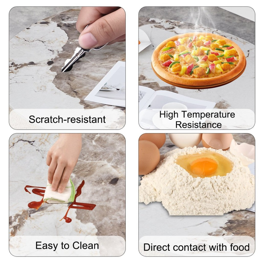 - Premium tabletop: 42-inch sintered stone / vitrified stone top with white imitation marble texture — durable, heat- and stain-resistant, and visually elegant.