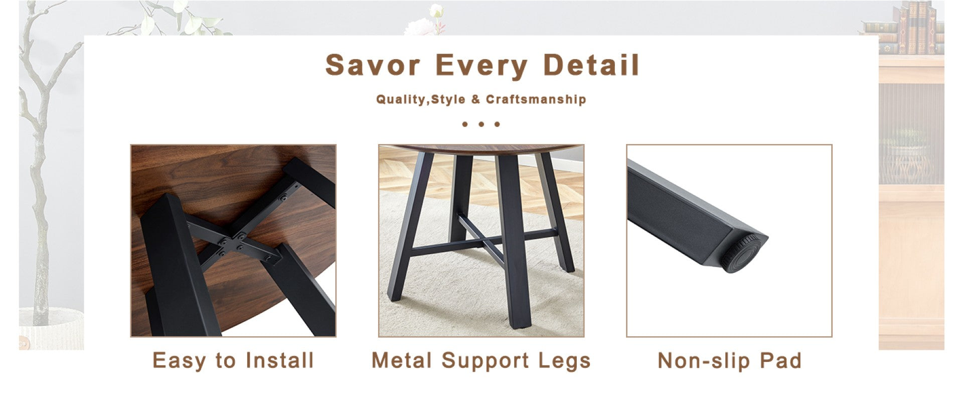 - MDF Dark Walnut Textured Tabletop: The table features an MDF structure with a dark walnut texture sticker and is 42 inches in diameter for a natural warmth.